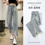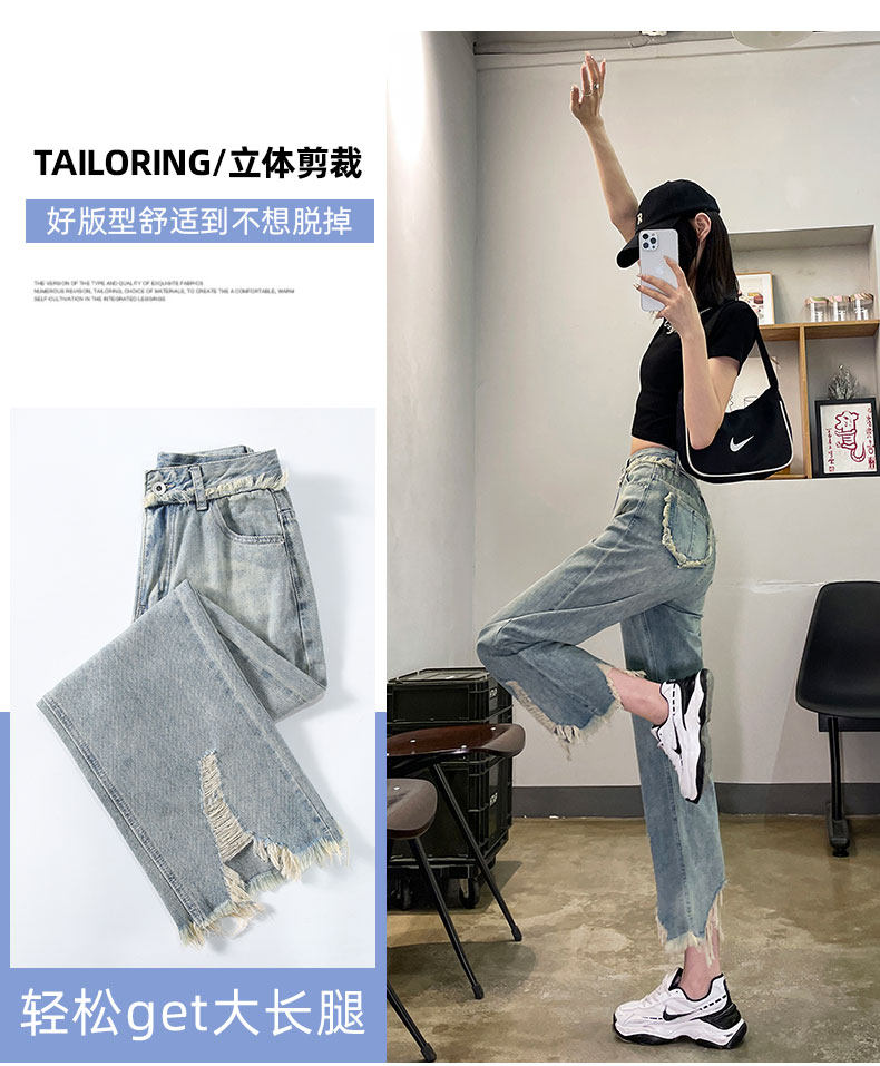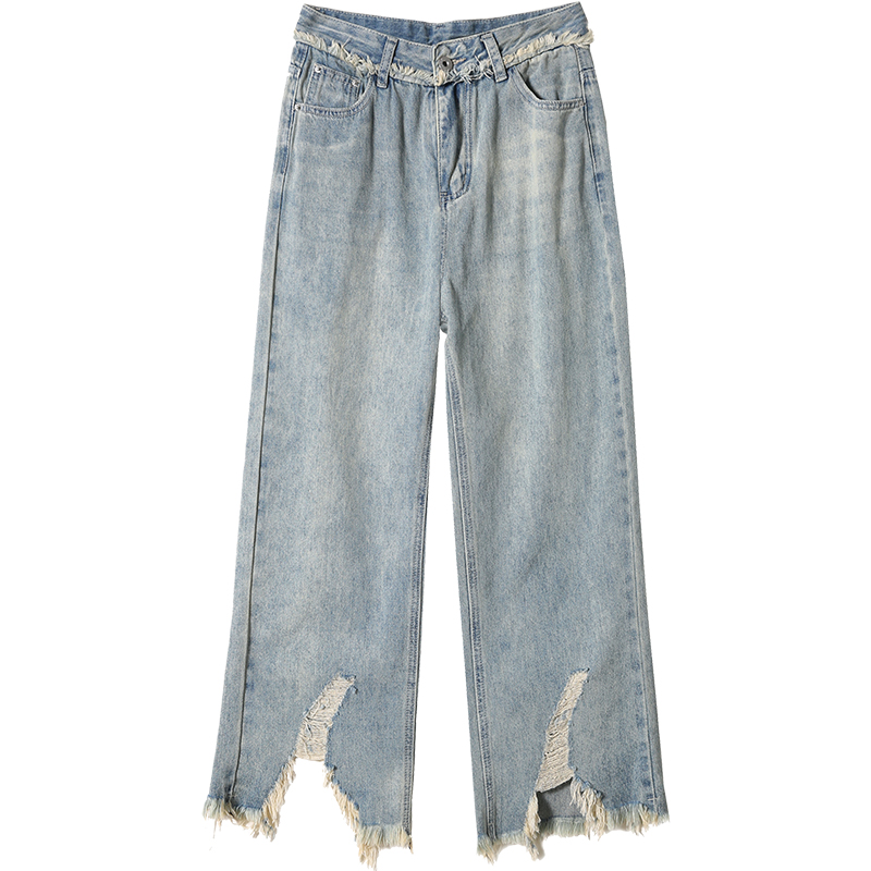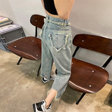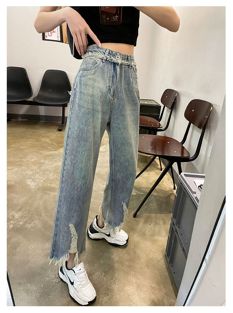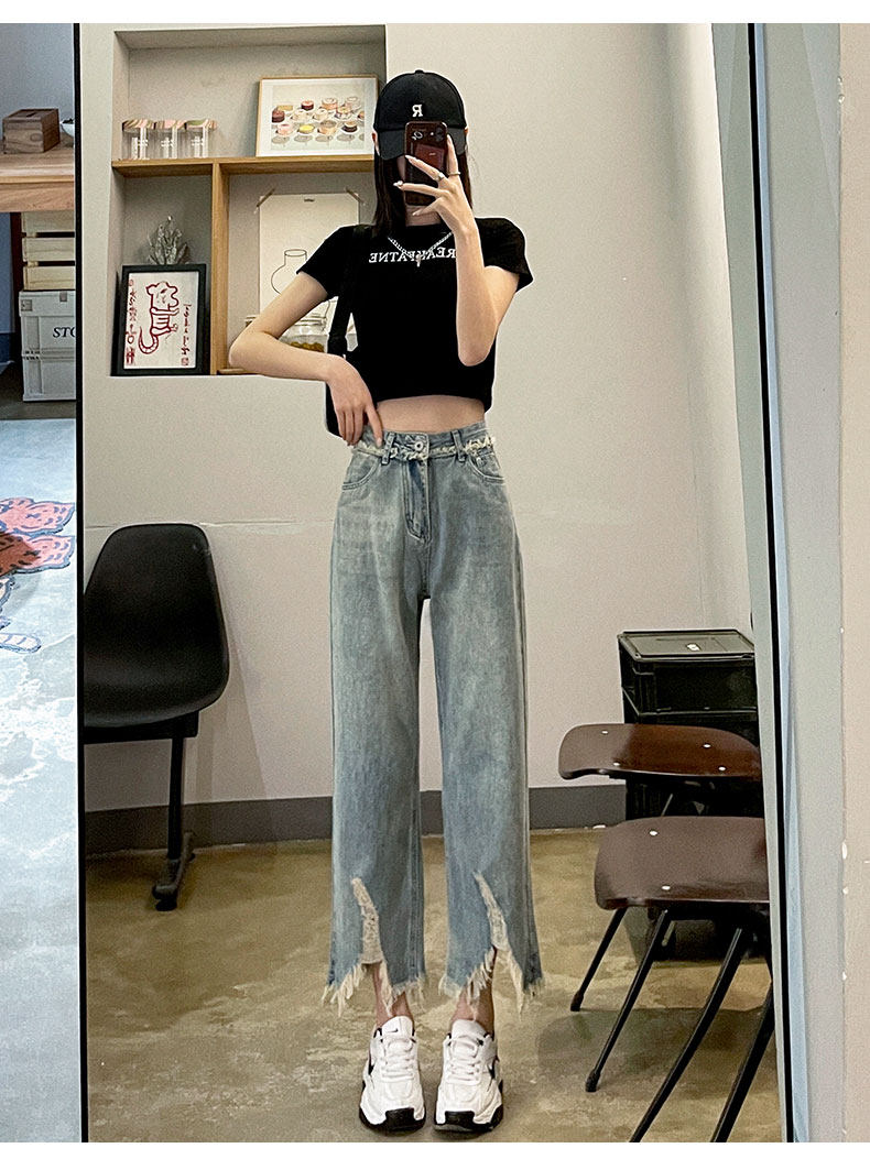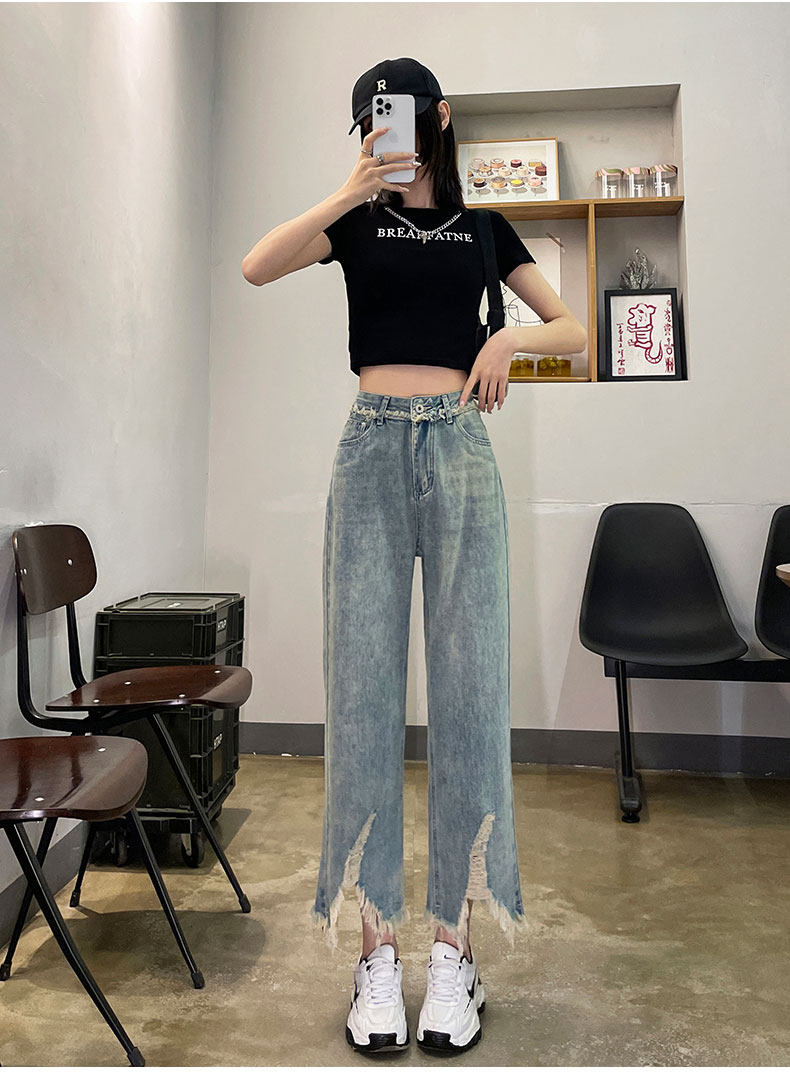 Ретро джинсовые тонкие джинсы, дизайнерские штаны, тренд сезона, высокая талия, свободный прямой крой