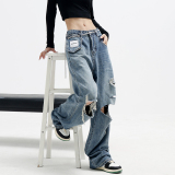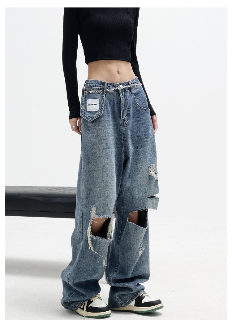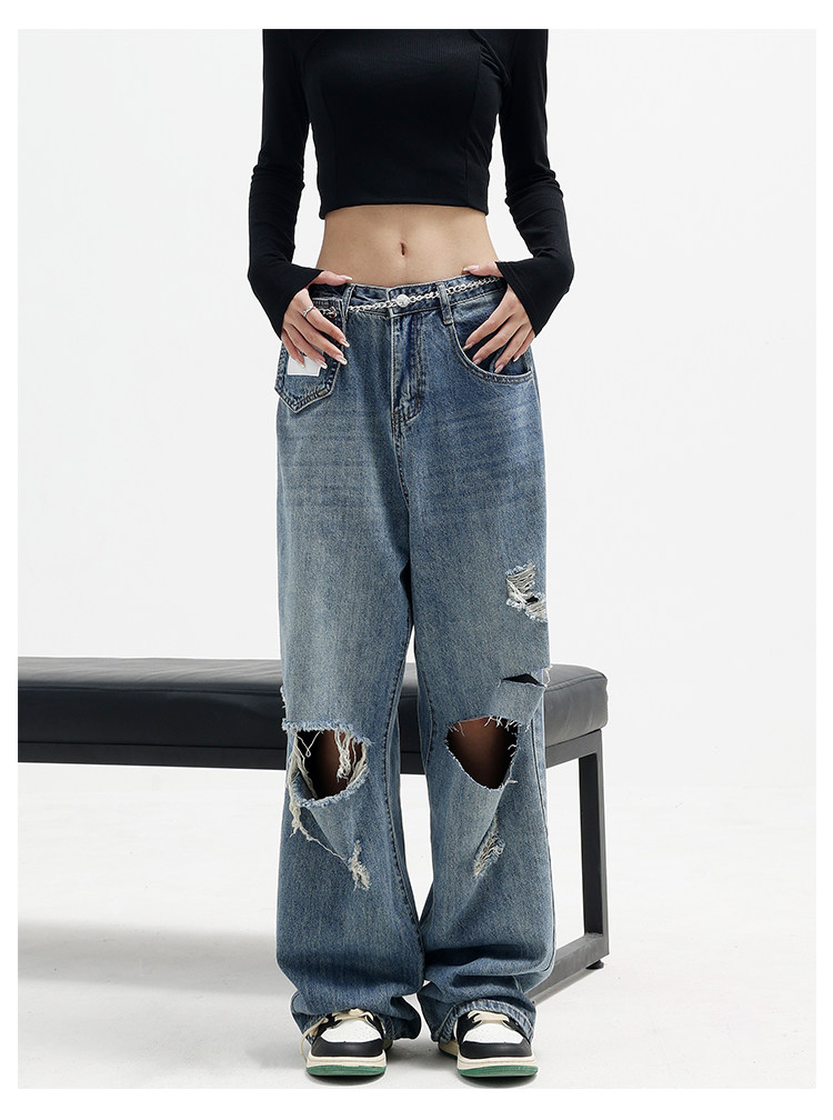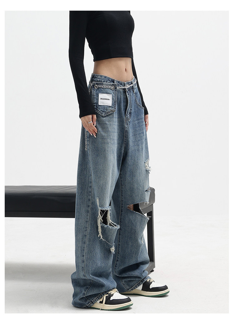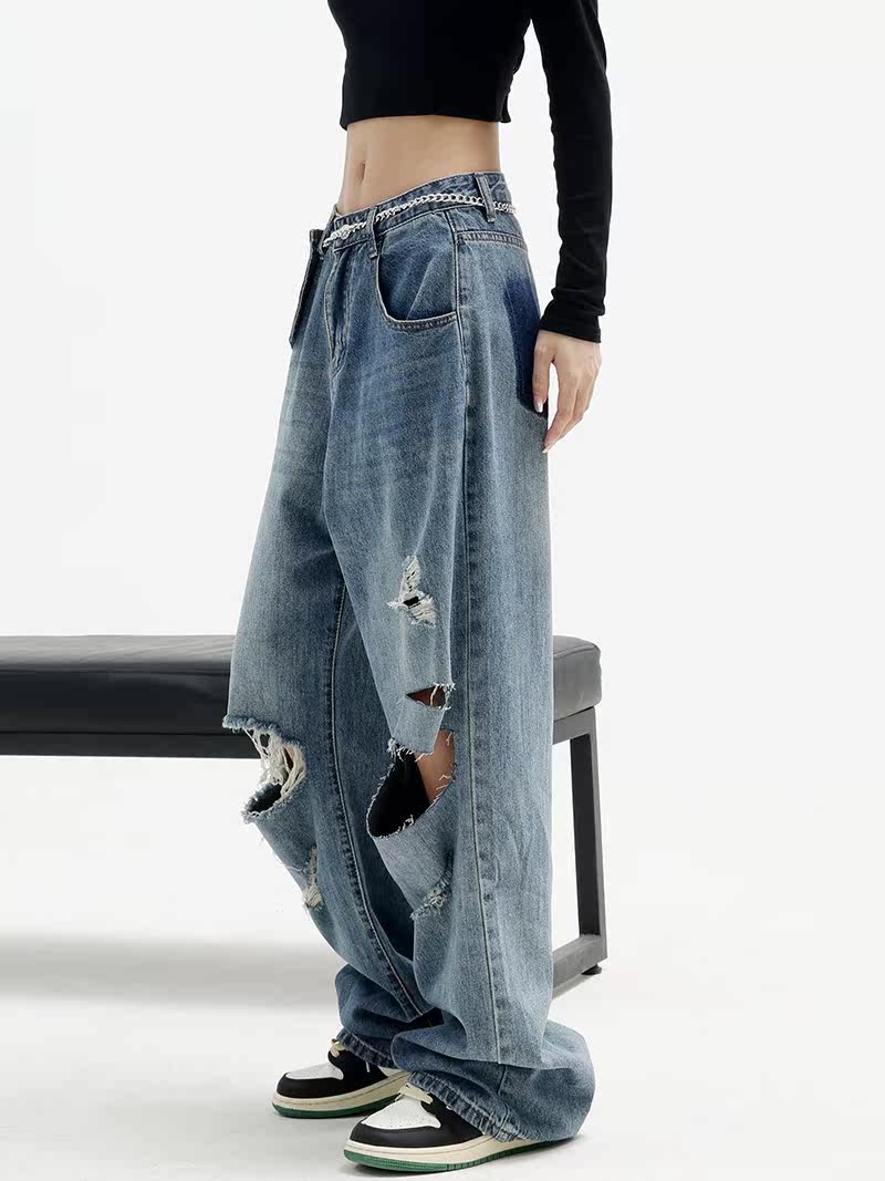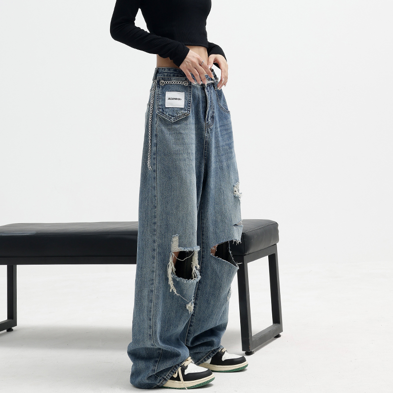 Дизайнерские синие джинсы, приталенные тонкие штаны, тренд сезона, свободный прямой крой, высокая талия