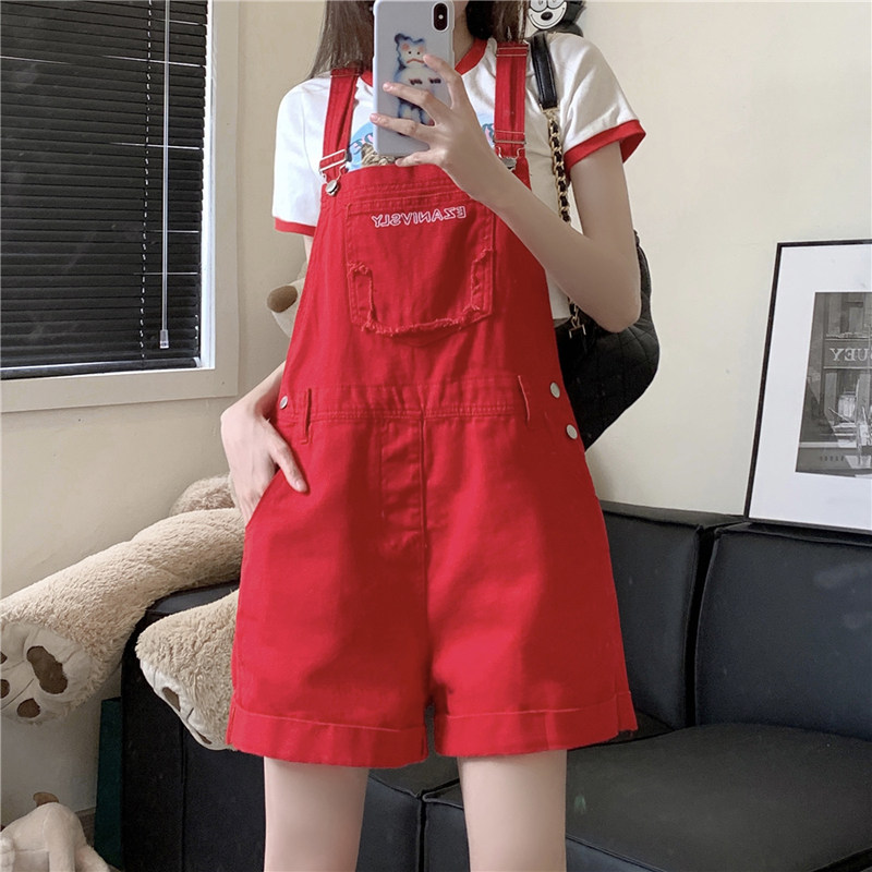 Летний красный модный комбинезон, джинсовая юбка, штаны, оверсайз, высокая талия