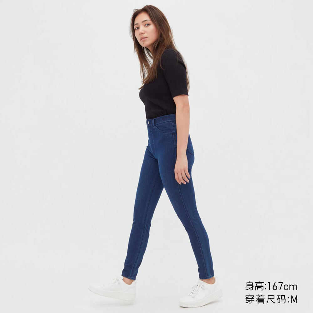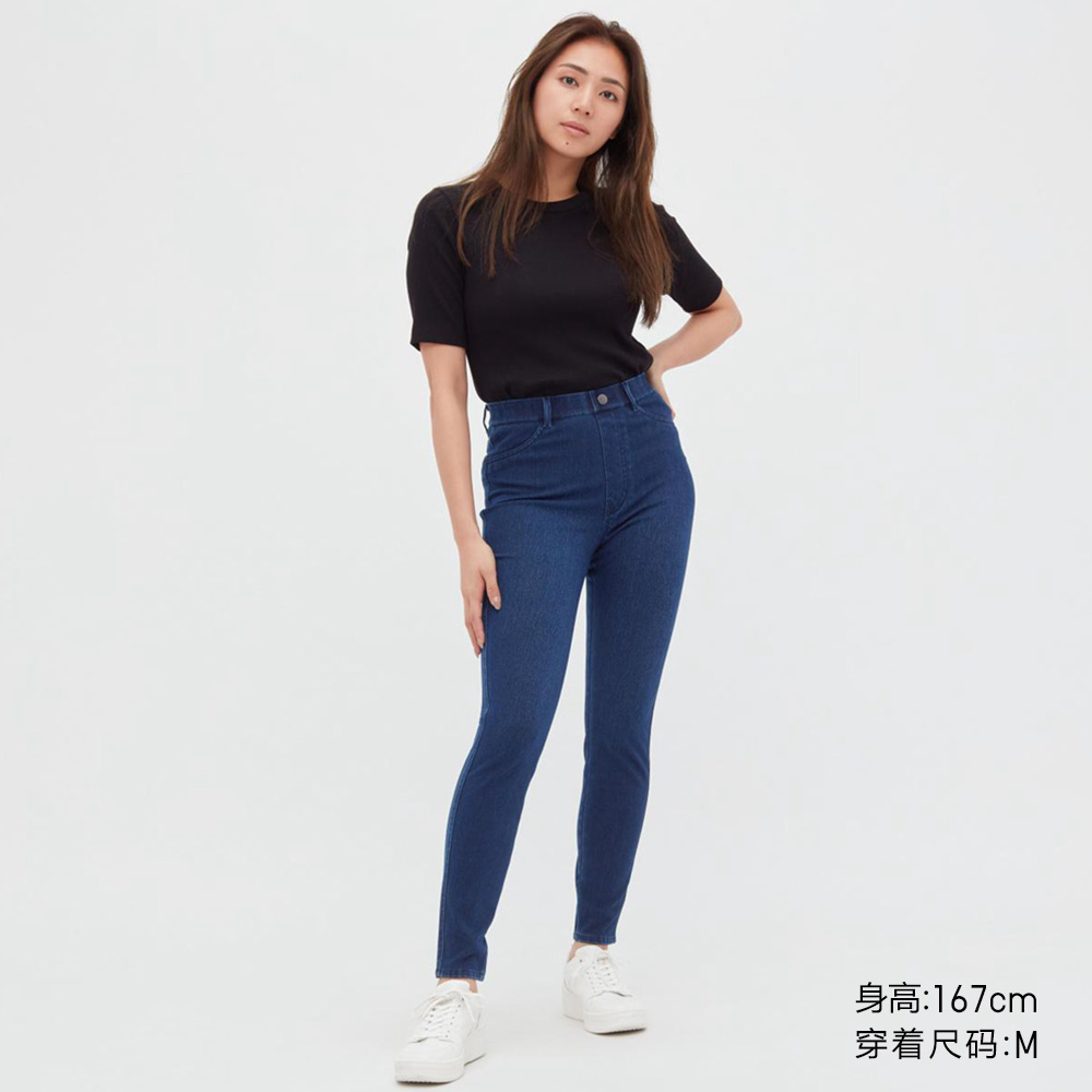 Uniqlo, эластичный джинсовый комбинезон, высокая талия, в обтяжку