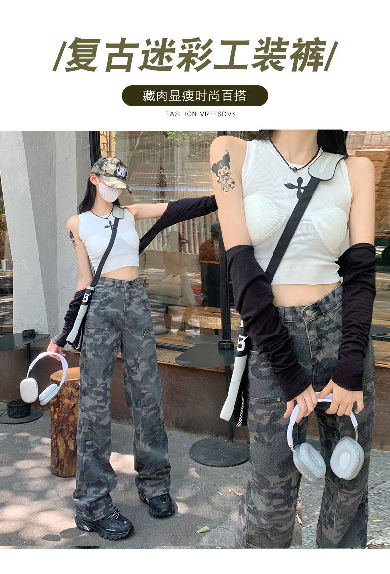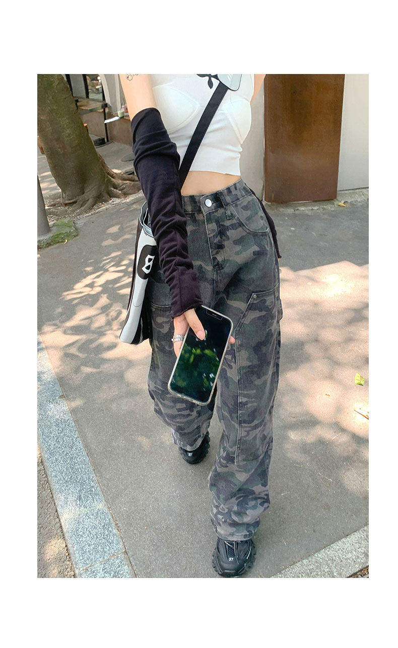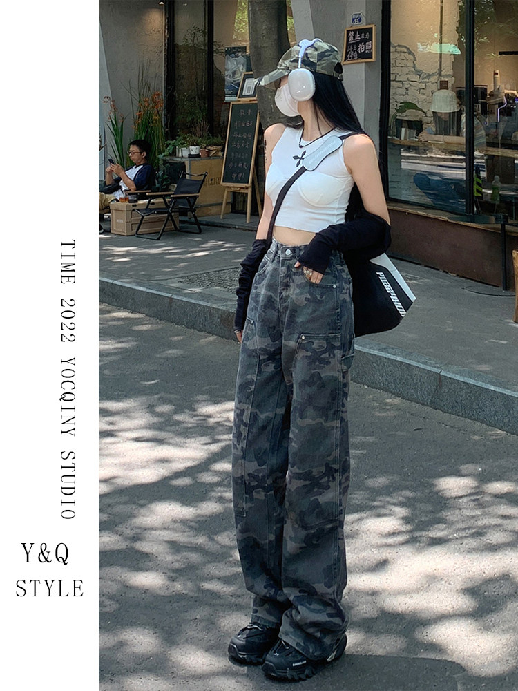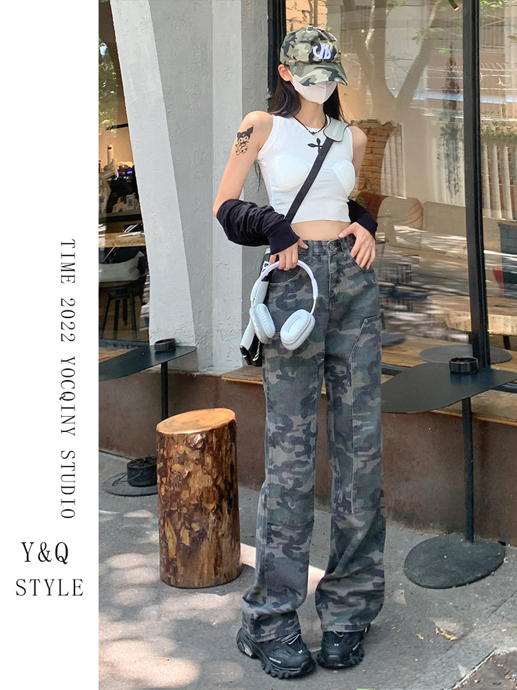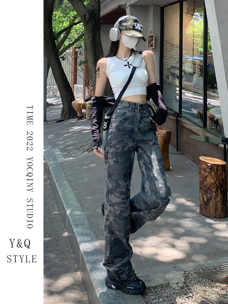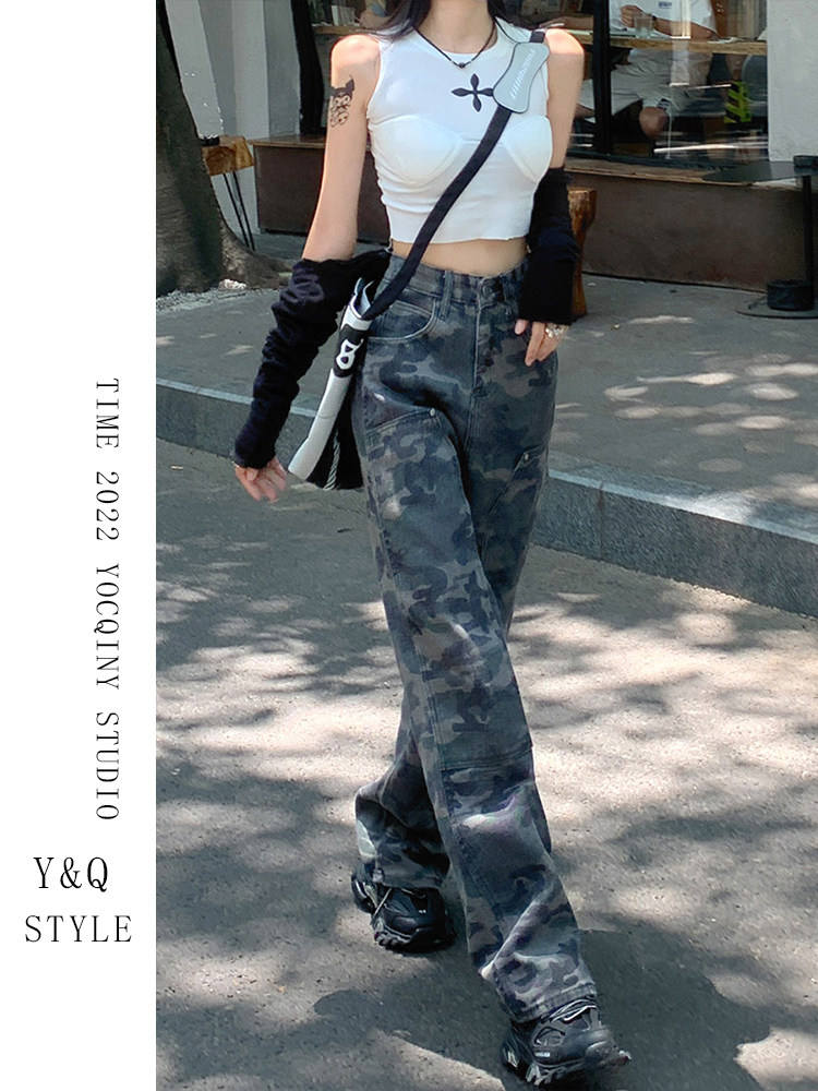Камуфляжные штаны в стиле хип-хоп, ретро джинсовые повседневные брюки, в американском стиле, свободный крой