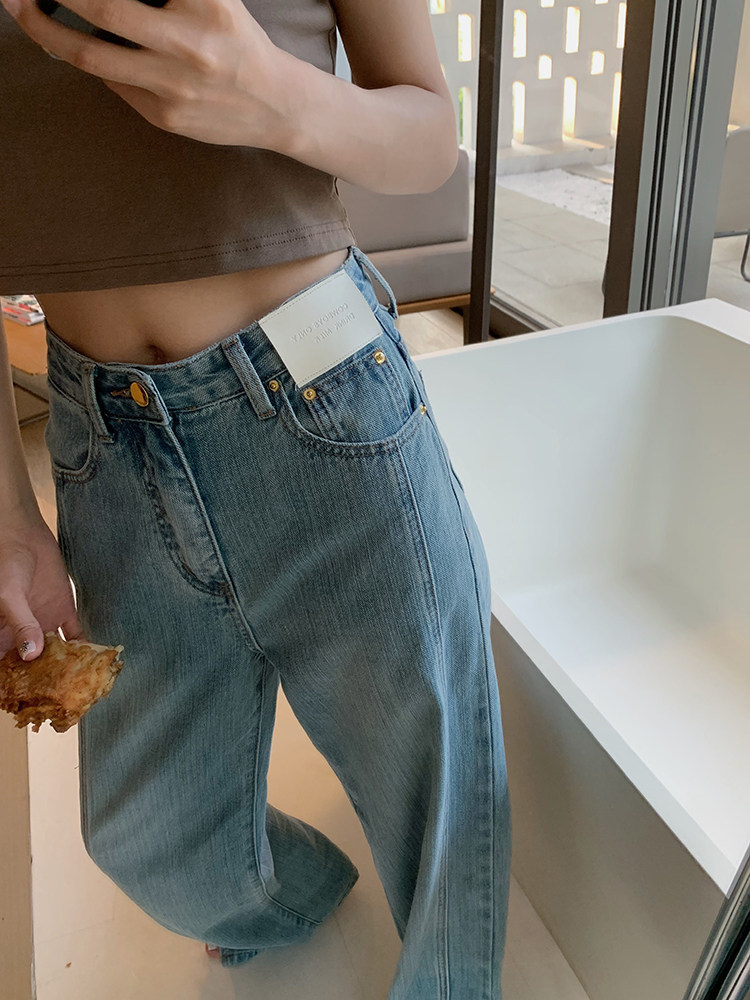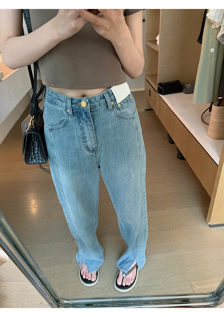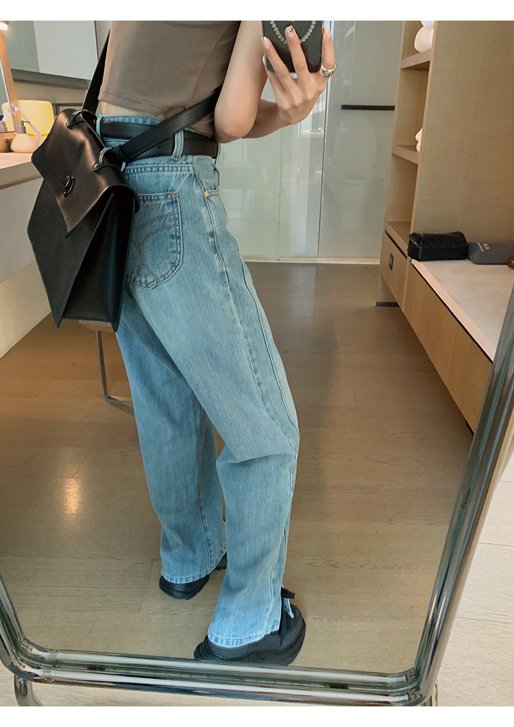 Дизайнерская бамбуковая ткань, джинсовые штаны, с вышивкой, свободный прямой крой