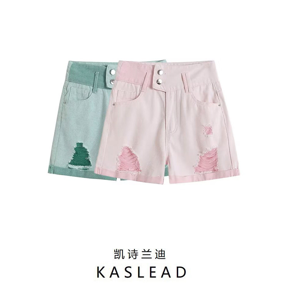 KASLEAD новая женская одежда в европейском и американском стиле, модные индивидуальные отверстия, декоративные манжеты, цветные джинсовые шорты с высокой талией