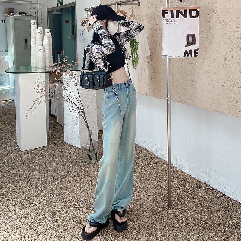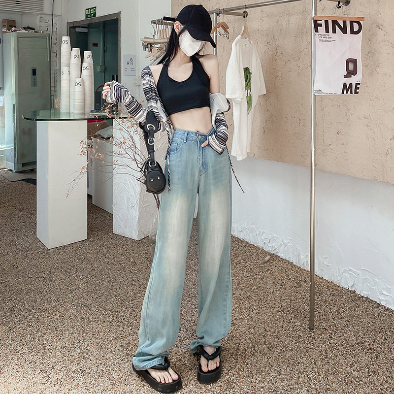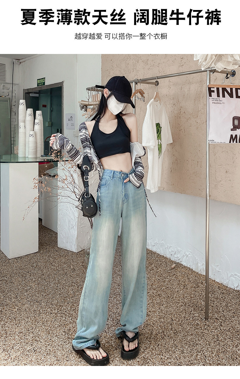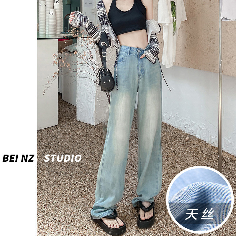 Джинсы, летние тонкие шелковые штаны, высокая талия, подходят для подростков, свободный прямой крой