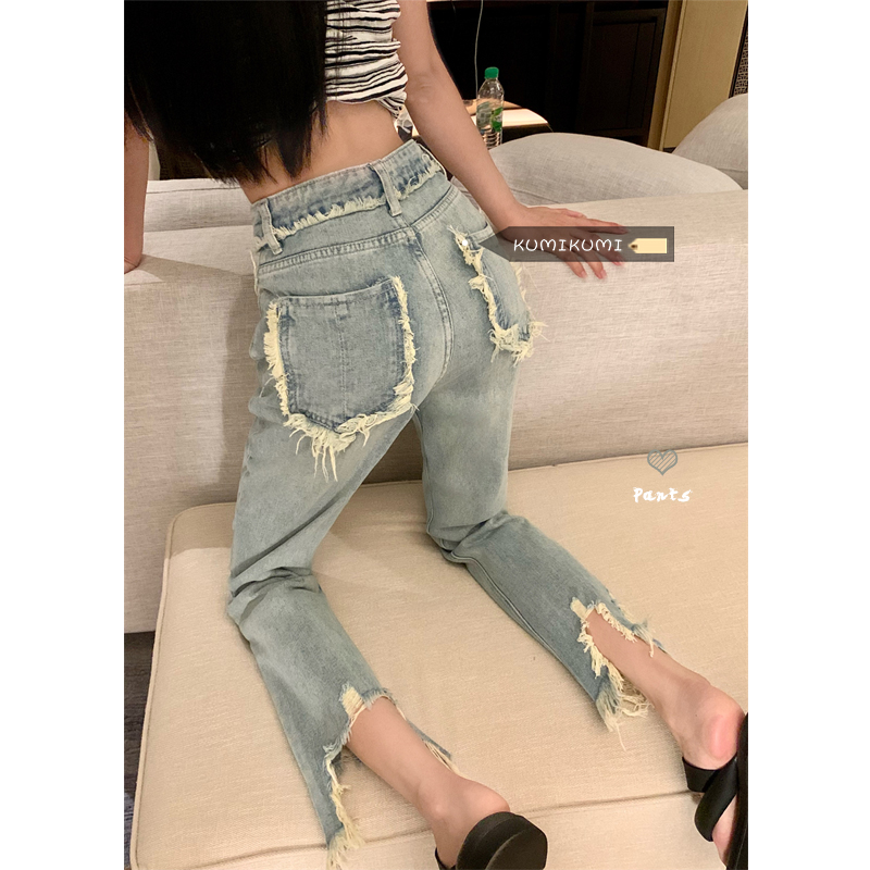 Ретро дизайнерские приталенные джинсы, летние штаны, тренд сезона, свободный прямой крой