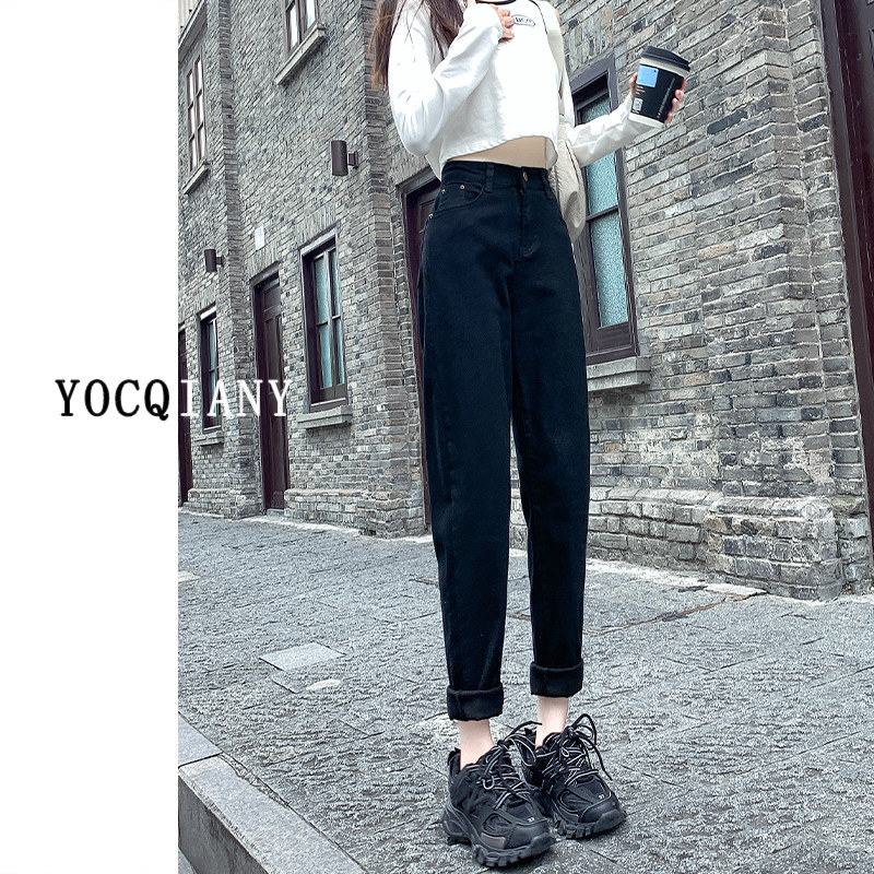 Штаны, черные джинсы, высокая талия, свободный крой, подходит для подростков, по фигуре