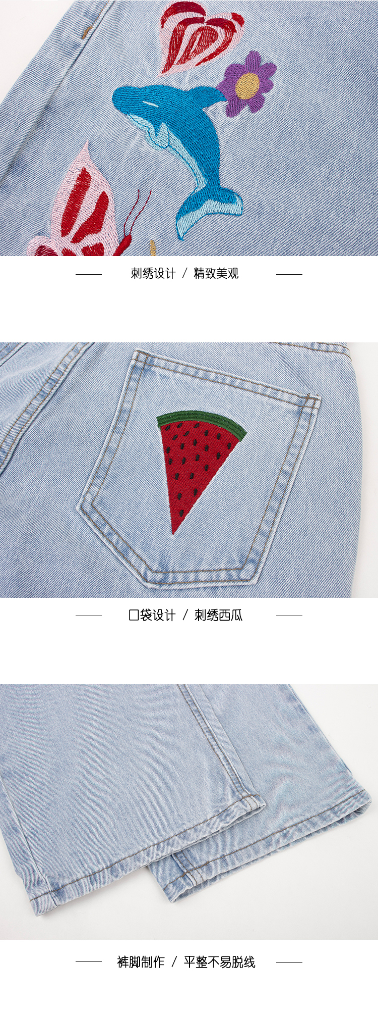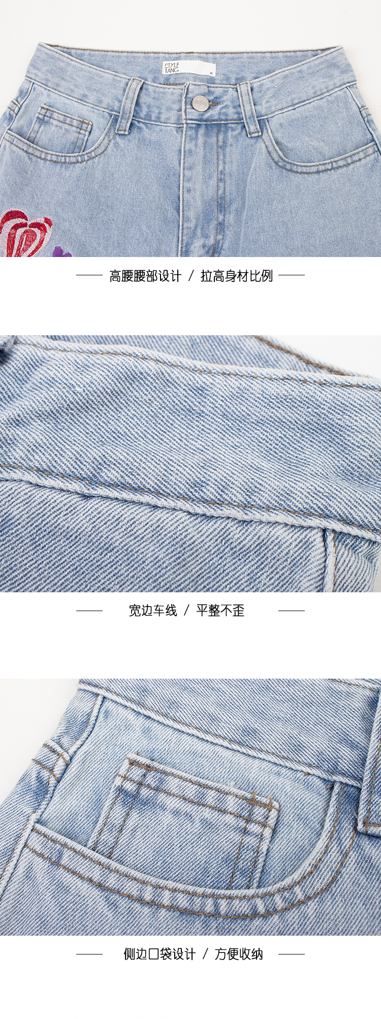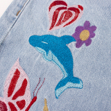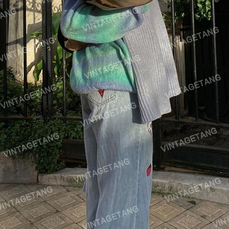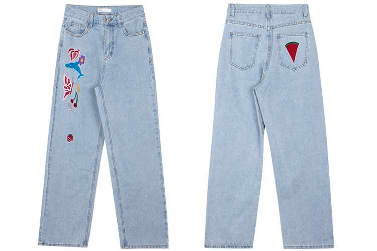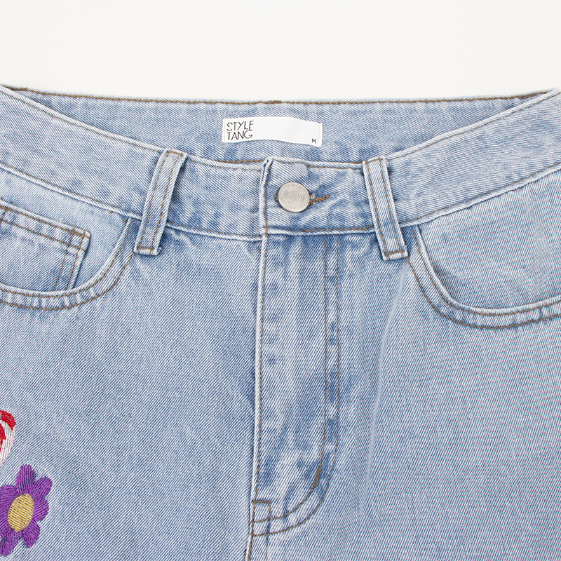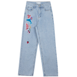 Tide, ретро джинсовые синие штаны, в американском стиле, с вышивкой, свободный прямой крой