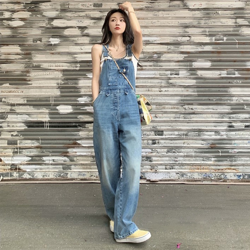 Летний ретро джинсовый комбинезон, штаны, в американском стиле, свободный прямой крой, изысканный стиль