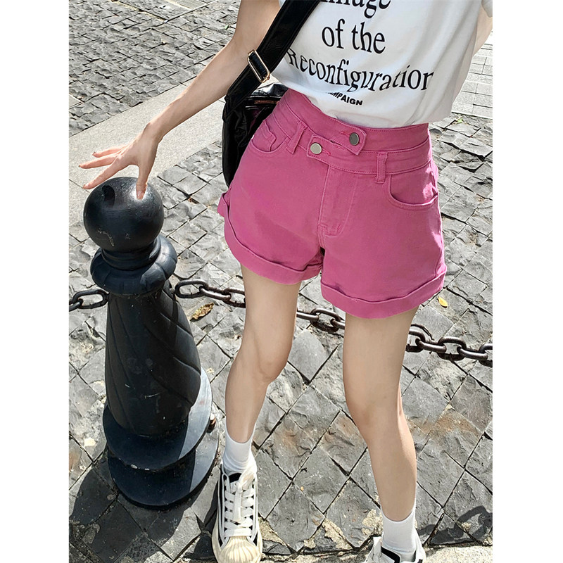 Розовая джинсовая юбка, шорты, дизайнерские приталенные штаны, в корейском стиле, коллекция 2022, тренд сезона, высокая талия