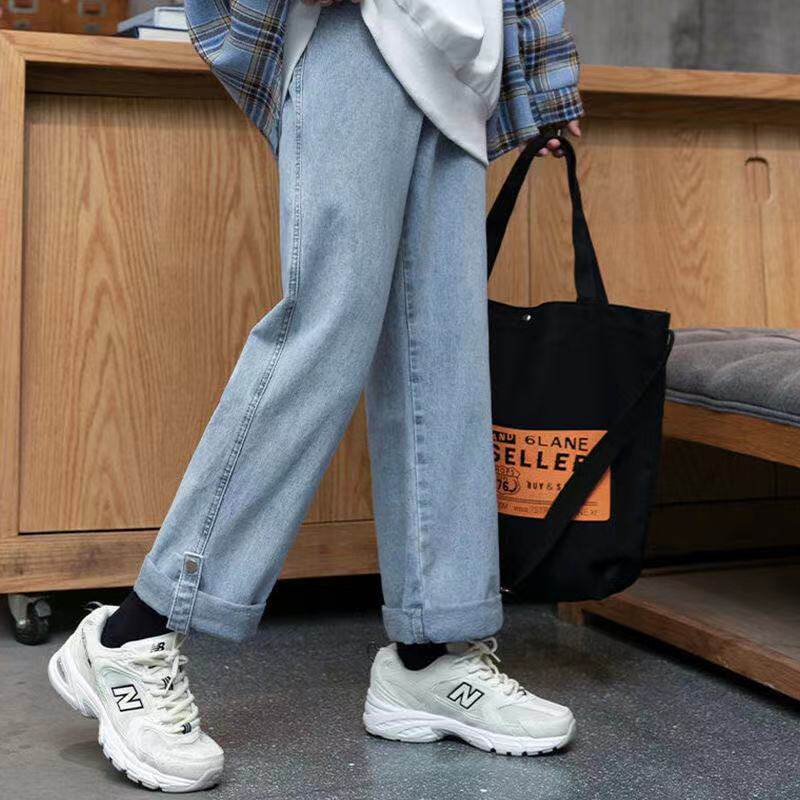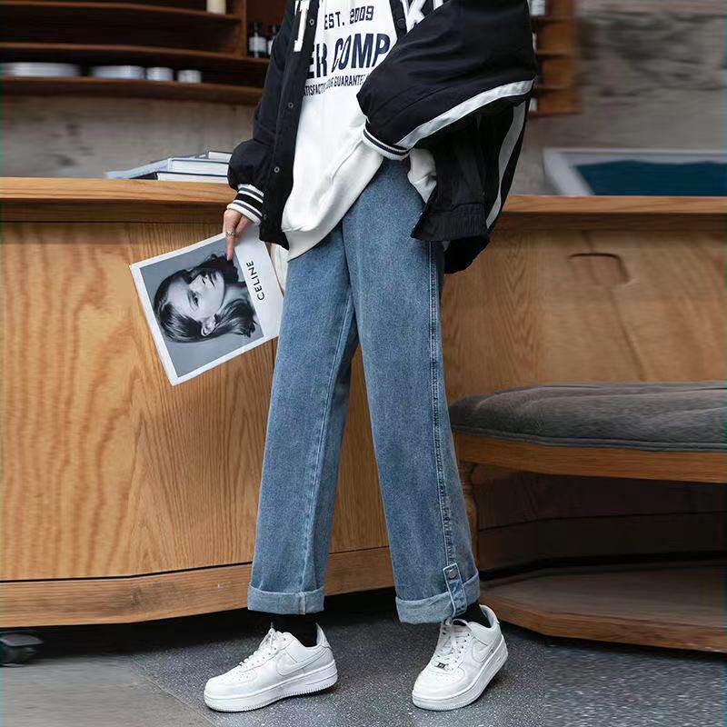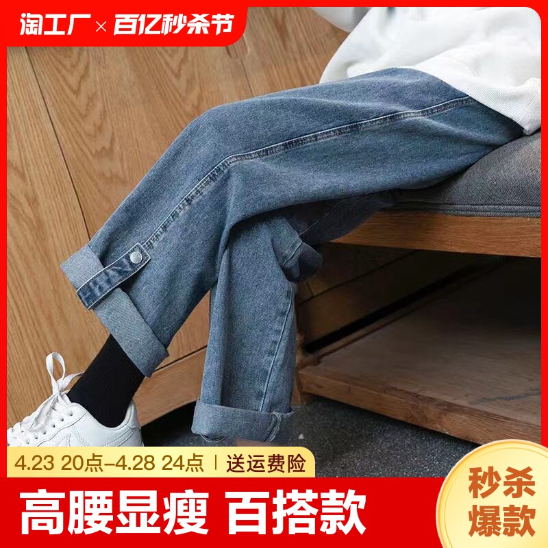 Джинсы, приталенные штаны для школьников, большой размер, высокая талия, свободный прямой крой, 2024 года, подходит для подростков