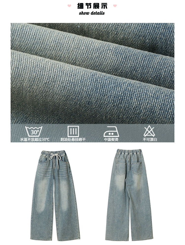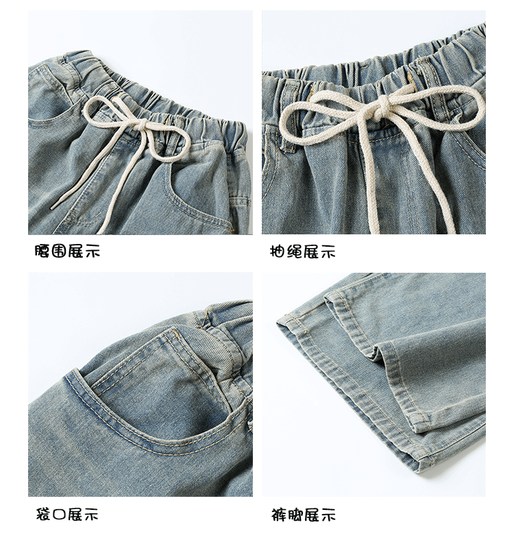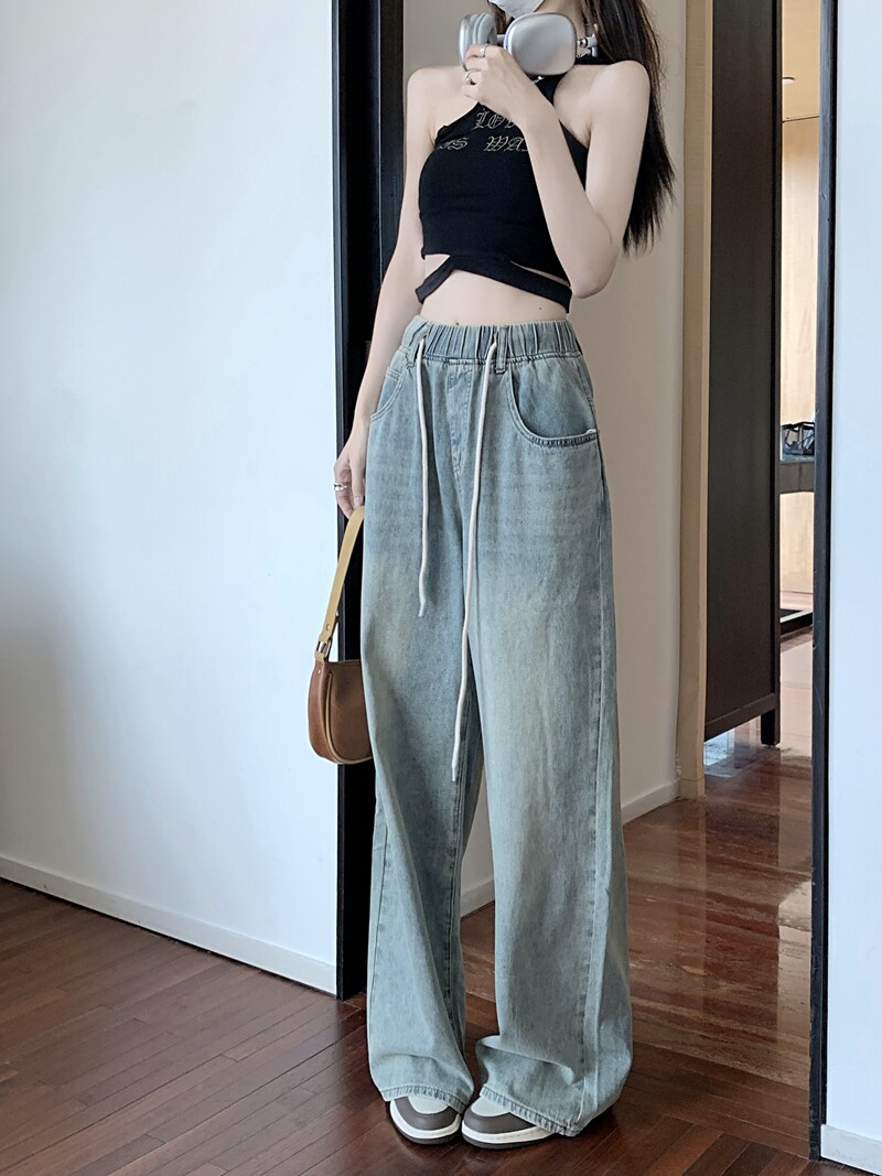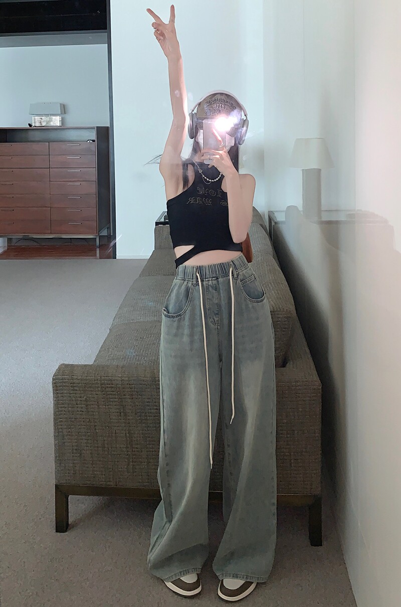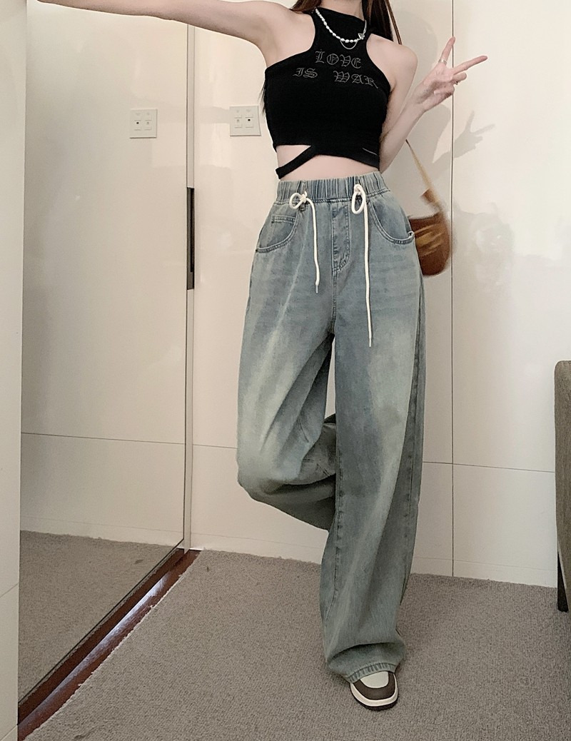 Большие штаны, приталенные джинсы, на шнурках, эластичная талия, высокая талия, свободный крой
