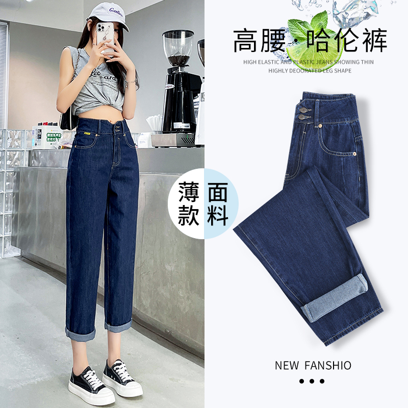 Джинсы, тонкие штаны, высокая талия, свободный крой, коллекция 2022, по фигуре