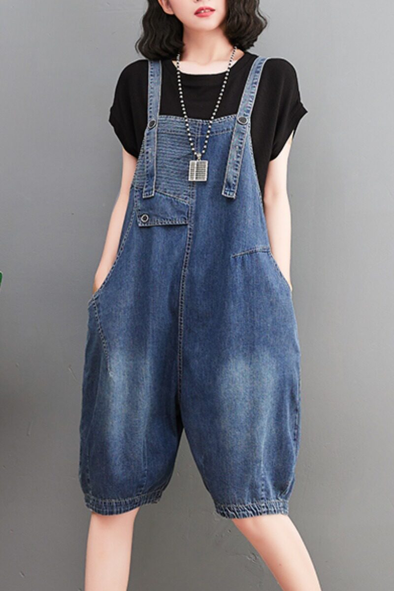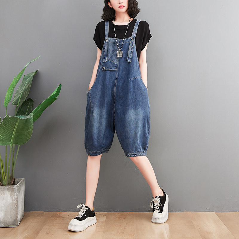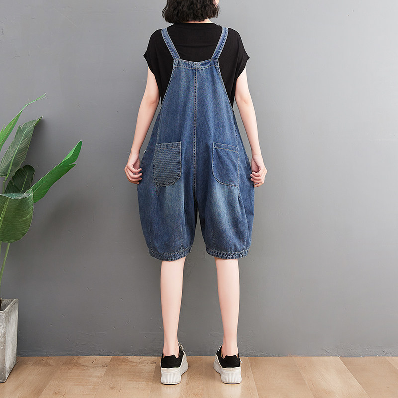 Джинсовый комбинезон, штаны, в корейском стиле, большой размер, эффект подтяжки, по фигуре