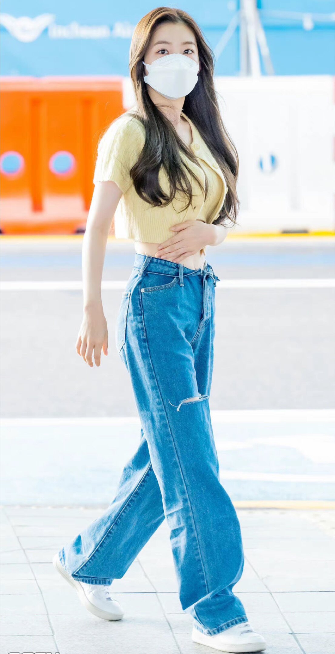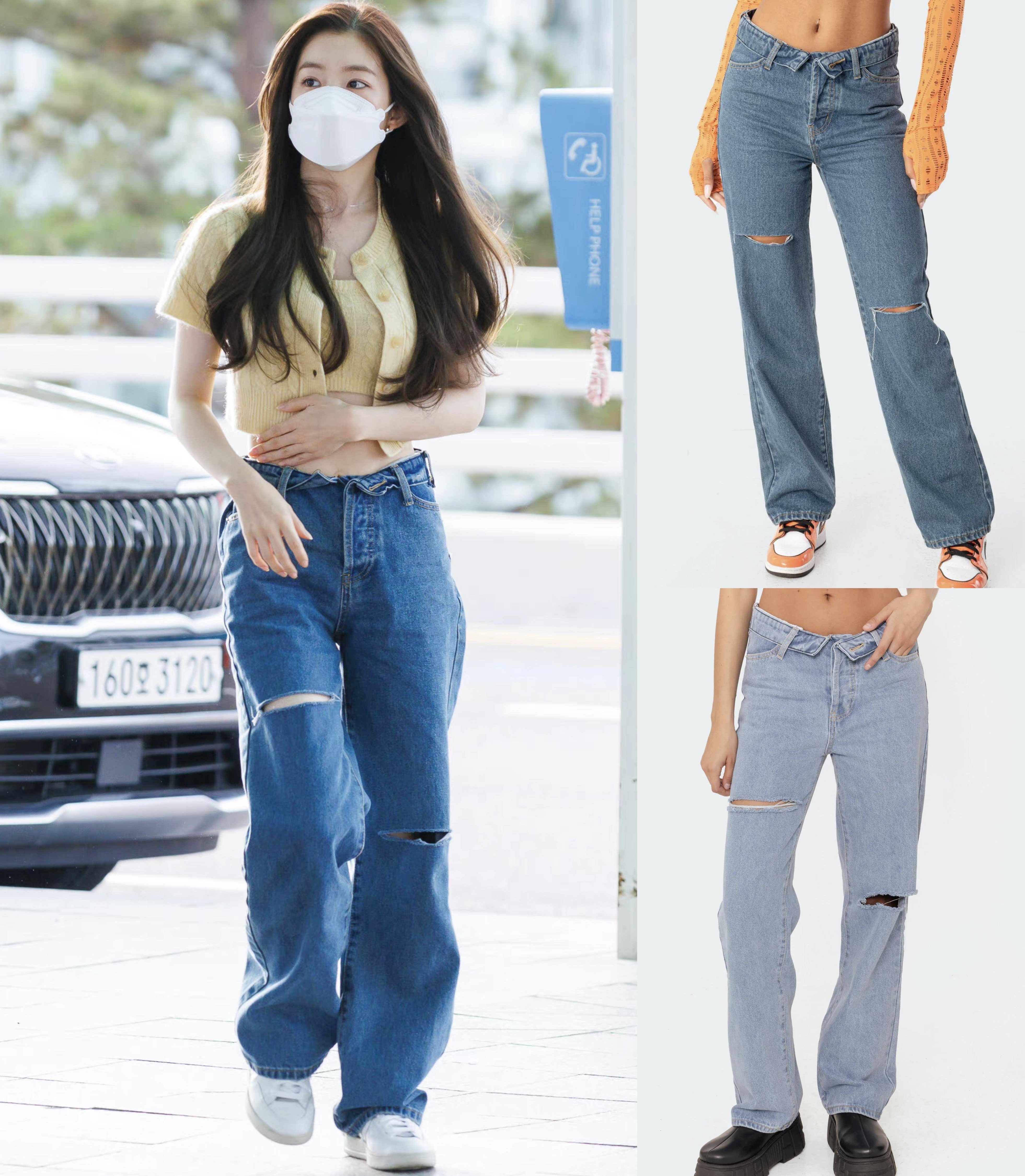 Ирэн, Пей Чжуйэ Эдикед Американская улица, разорвающие складные джинсы с поясничной группой, два цвета доступны