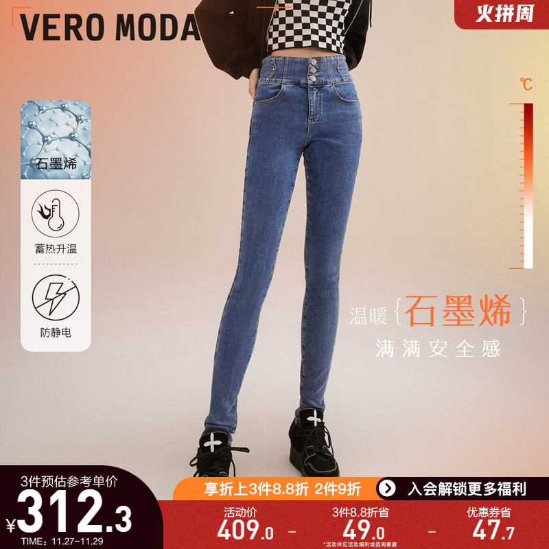 Vero moda, демисезонные джинсы, утепленные эластичные штаны, высокая талия