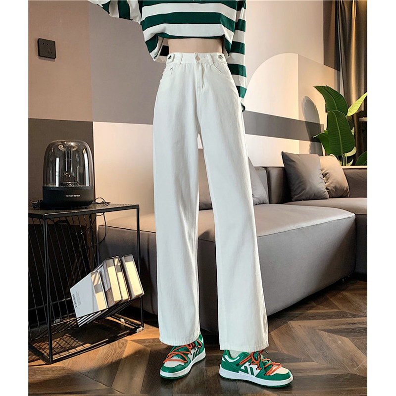 Белые джинсы, штаны, в корейском стиле, высокая талия, свободный прямой крой, подходит для подростков