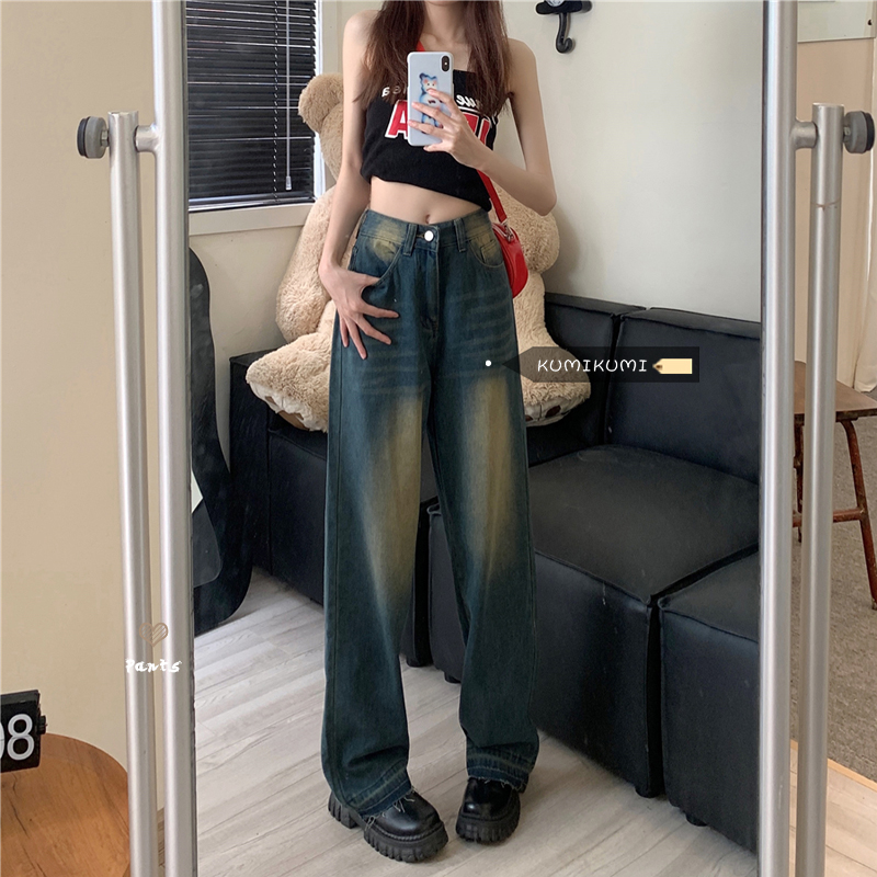 Приталенные джинсы, ретро штаны, высокая талия, свободный прямой крой, оверсайз