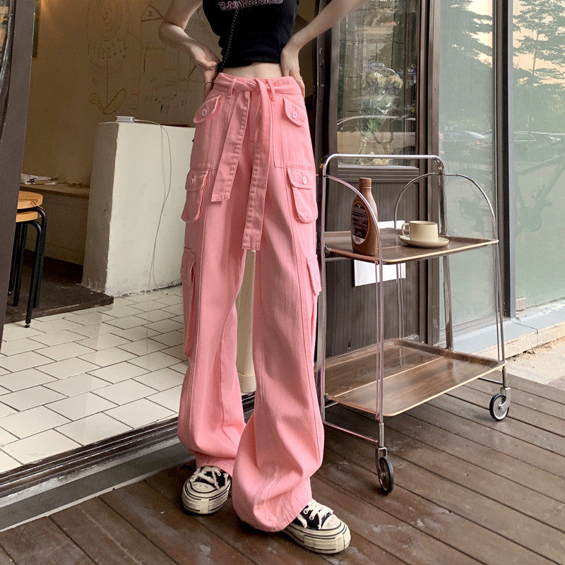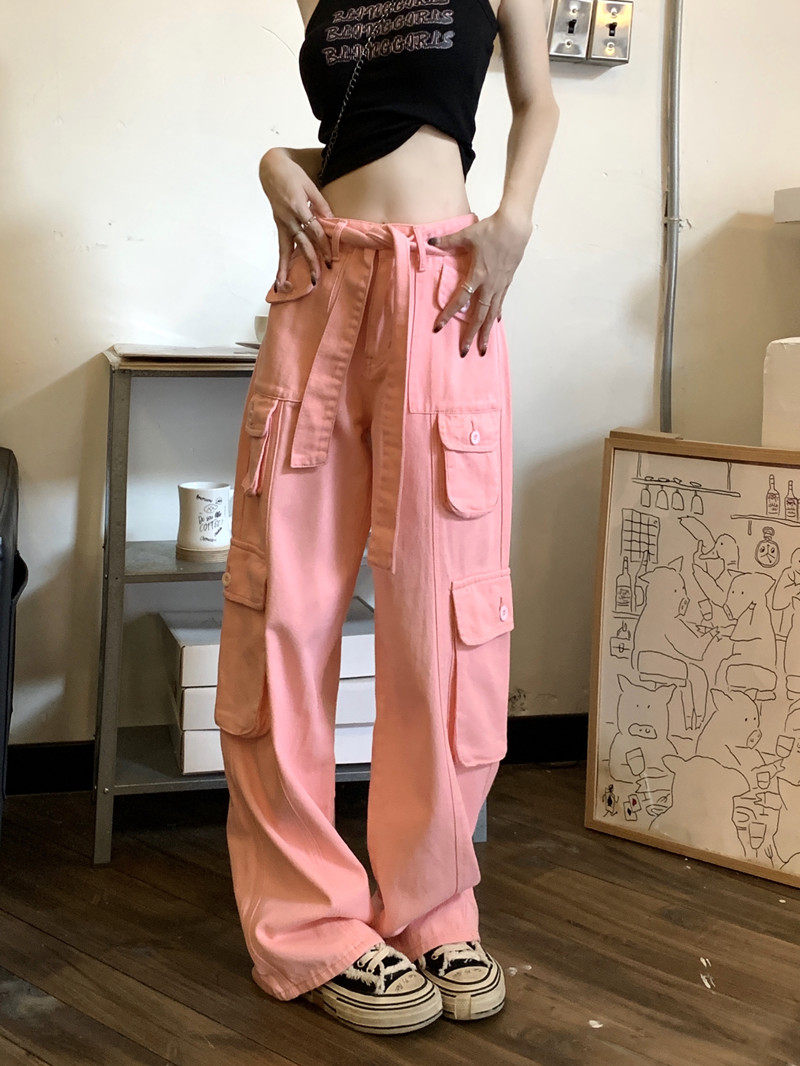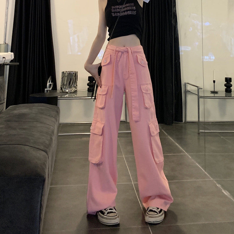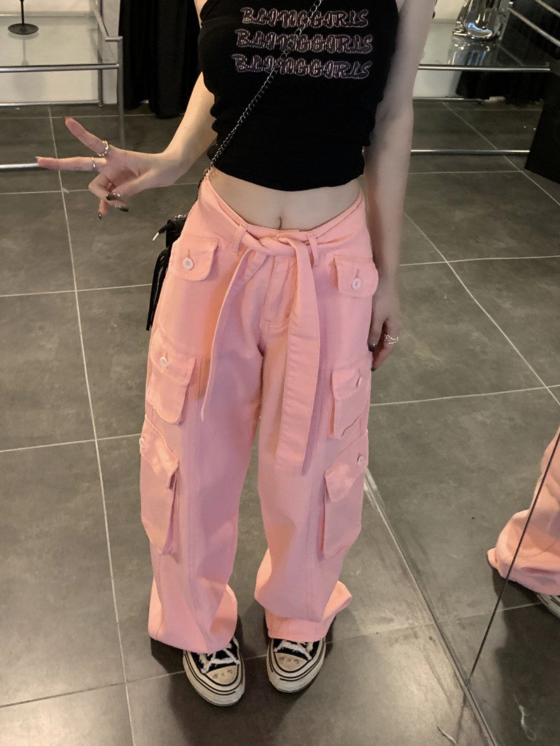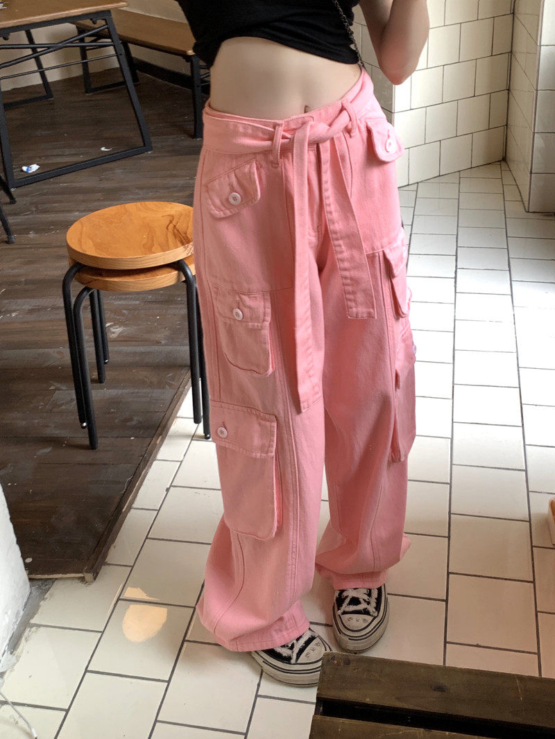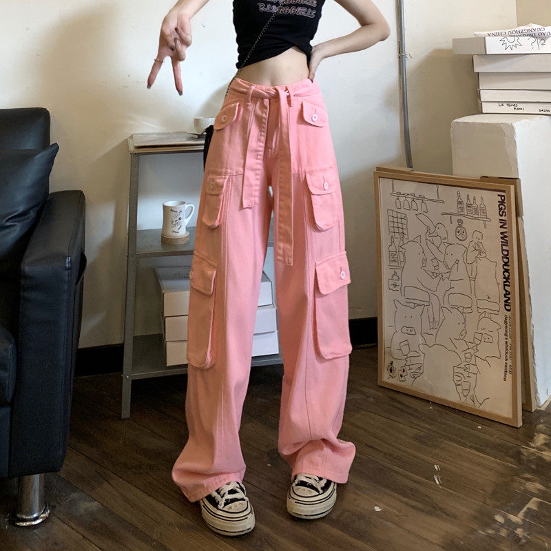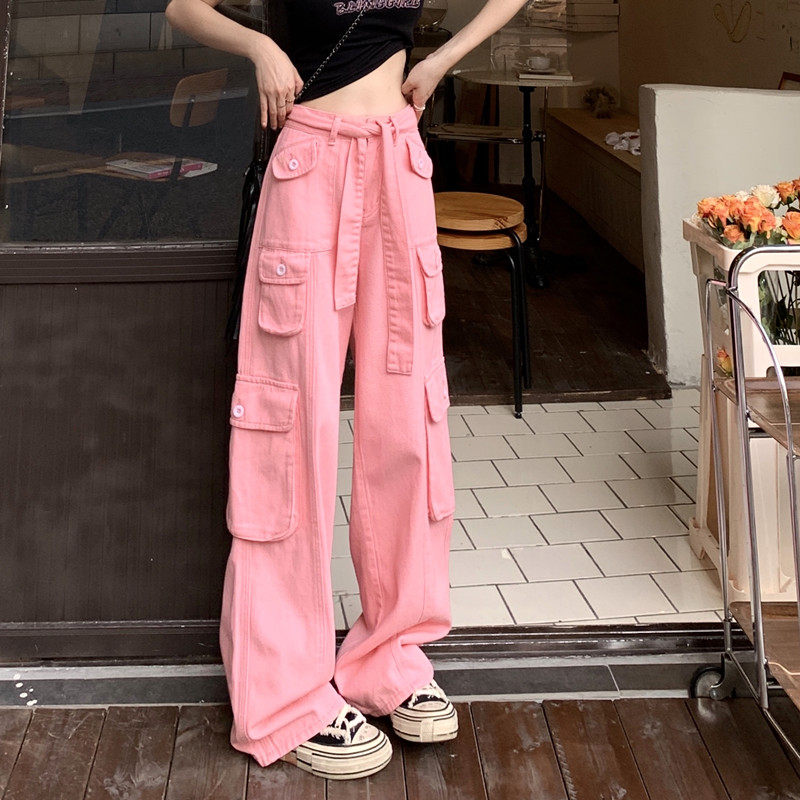 Tide, штаны, розовые джинсы, большой размер, высокая талия, свободный крой
