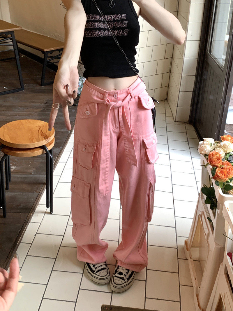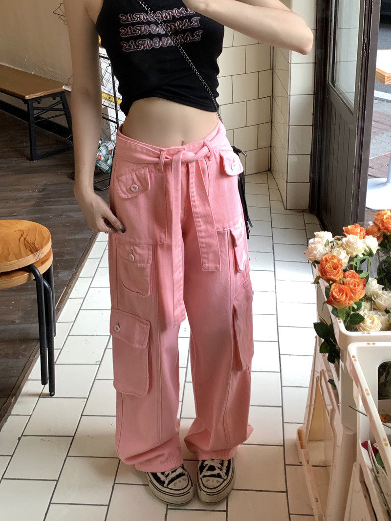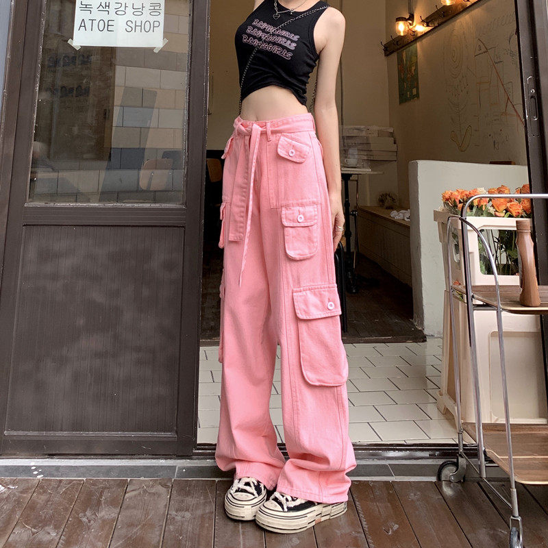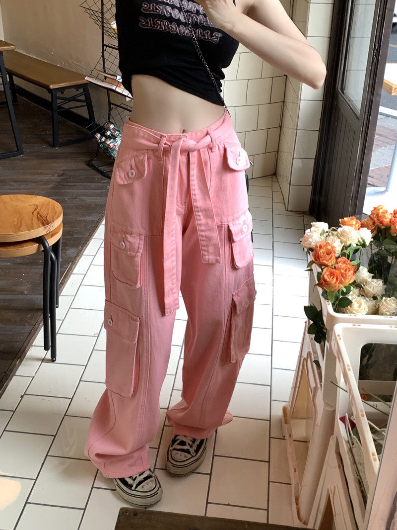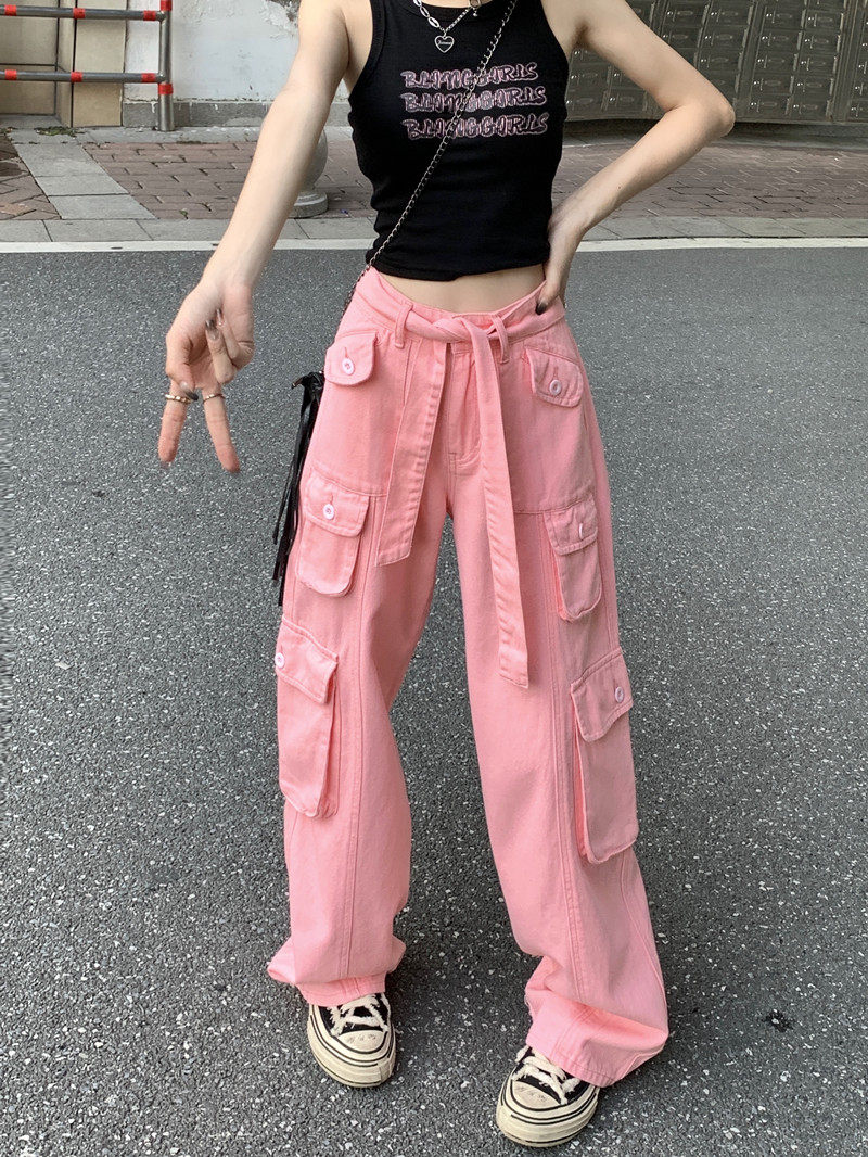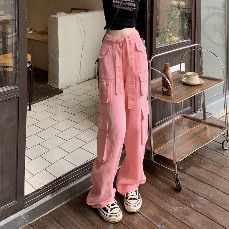 Tide, штаны, розовые джинсы, большой размер, высокая талия, свободный крой