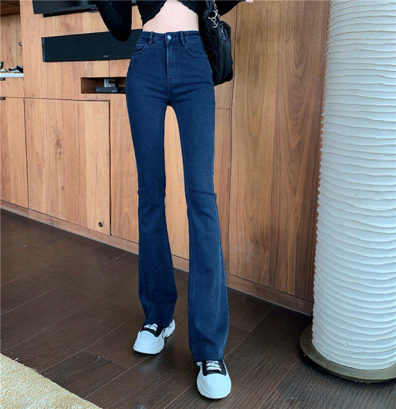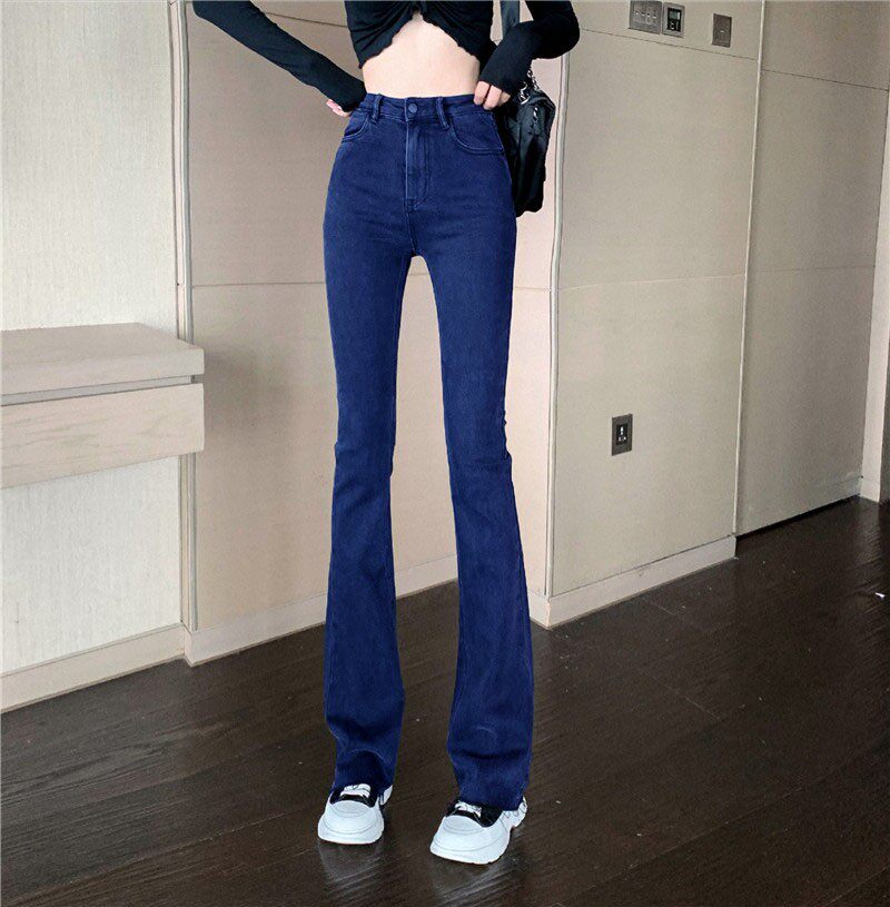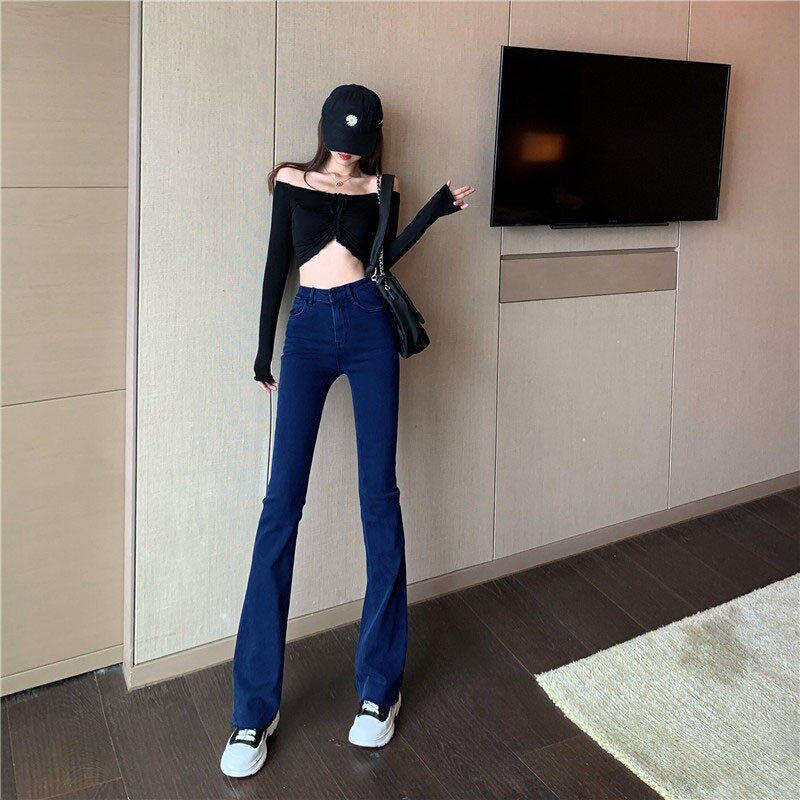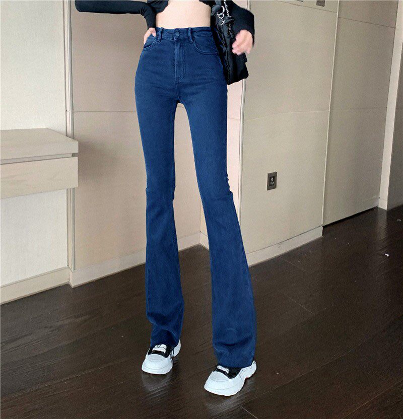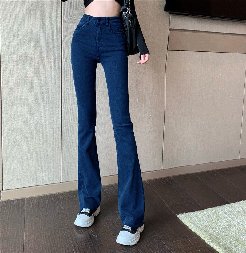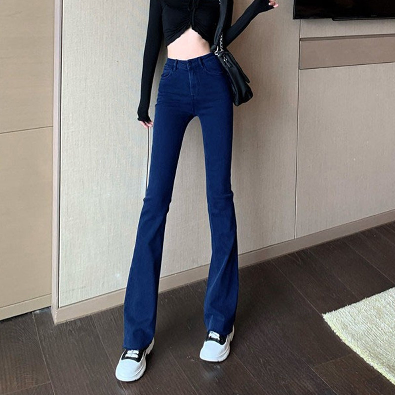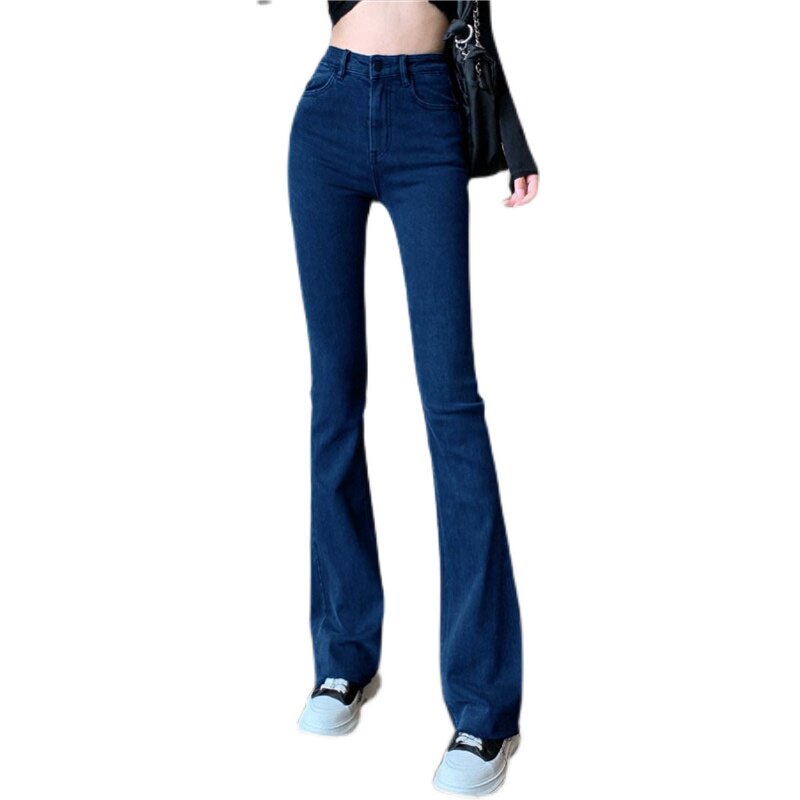 Синие весенние джинсы, универсальные штаны, эластичные штаны-клёш, высокая талия, облегающий крой
