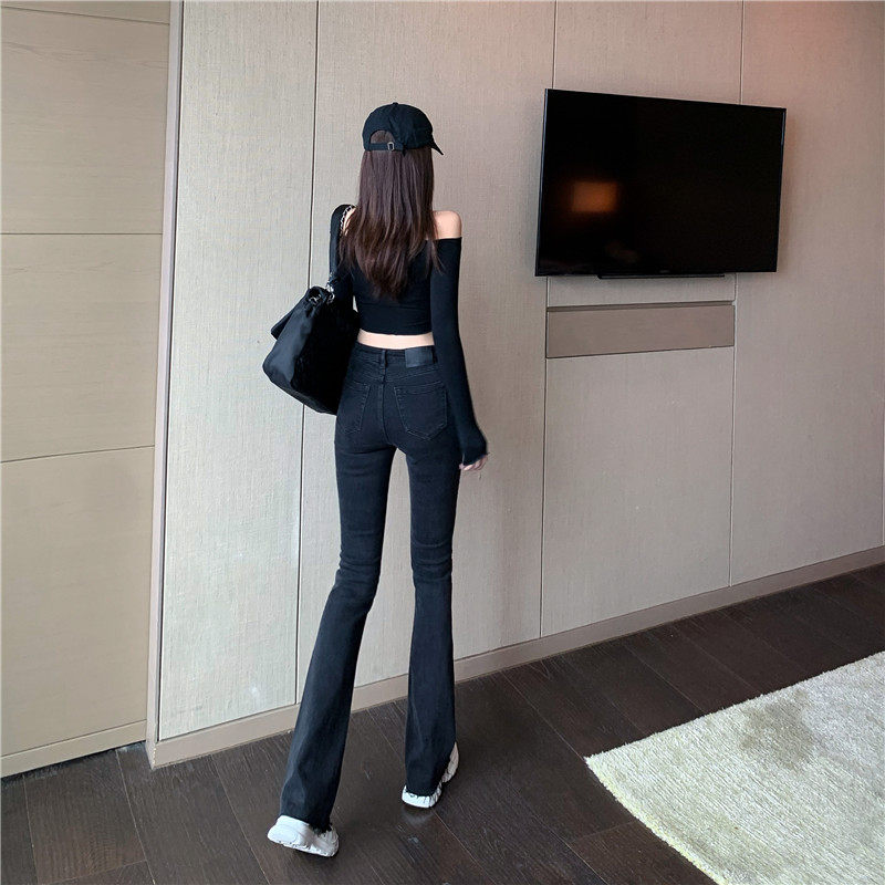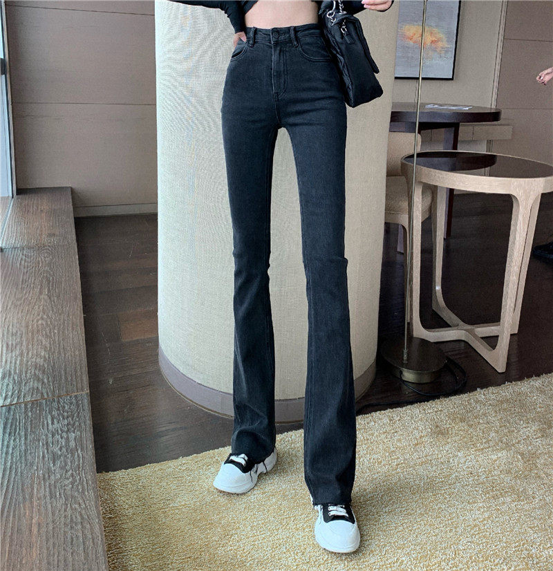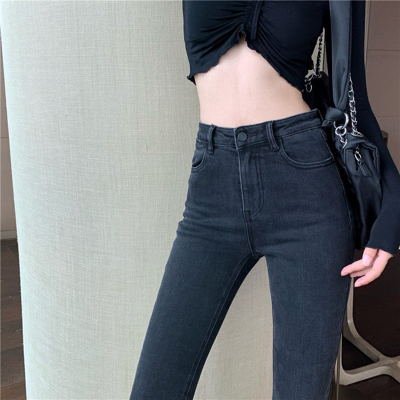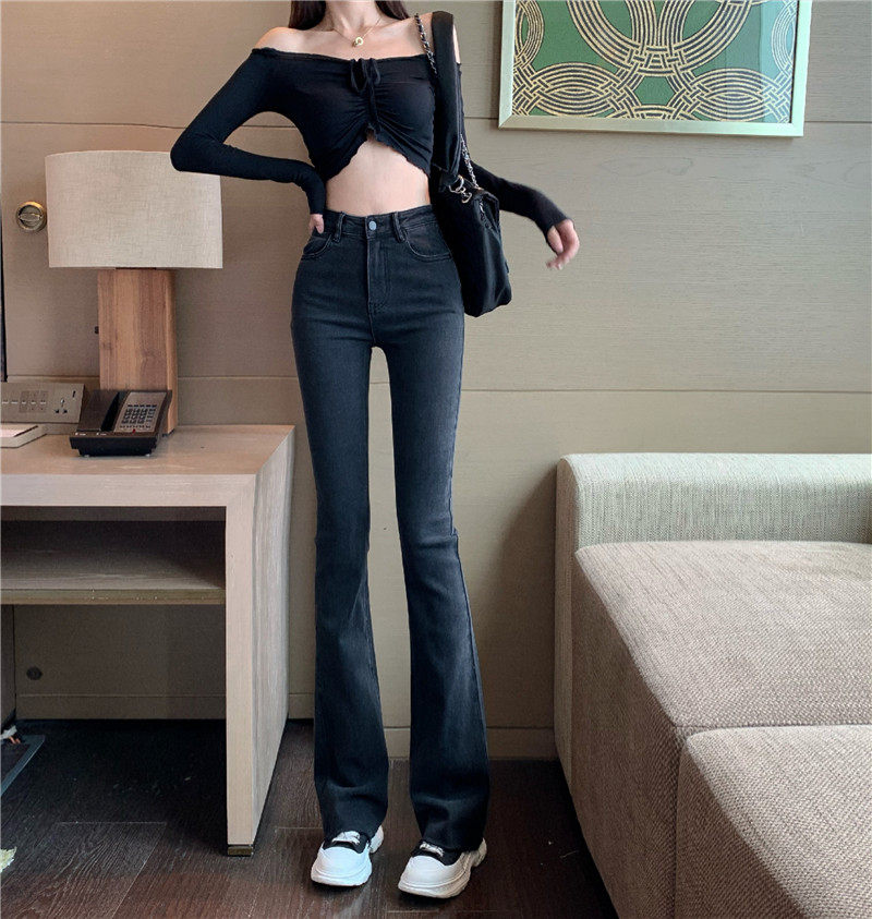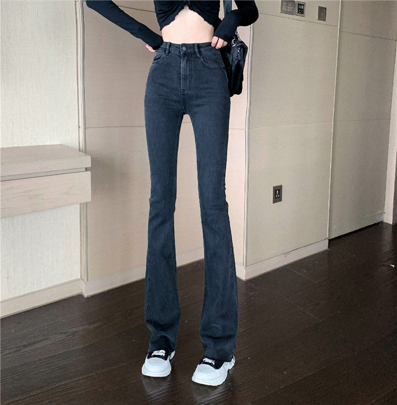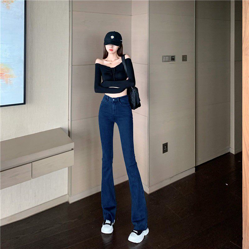 Синие весенние джинсы, универсальные штаны, эластичные штаны-клёш, высокая талия, облегающий крой