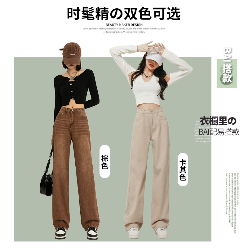Тонкие прямые свободные джинсы, цветные коричневые ретро штаны, высокая талия, 2025 года, в американском стиле