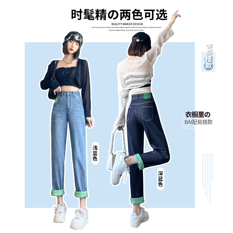 Приталенные прямые свободные джинсы, осенние штаны, коллекция 2023, высокая талия, свободный крой