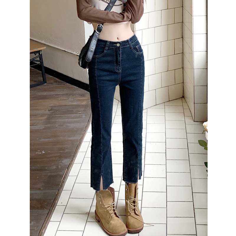 Осенние штаны, приталенные ретро эластичные джинсы, высокая талия, свободный прямой крой