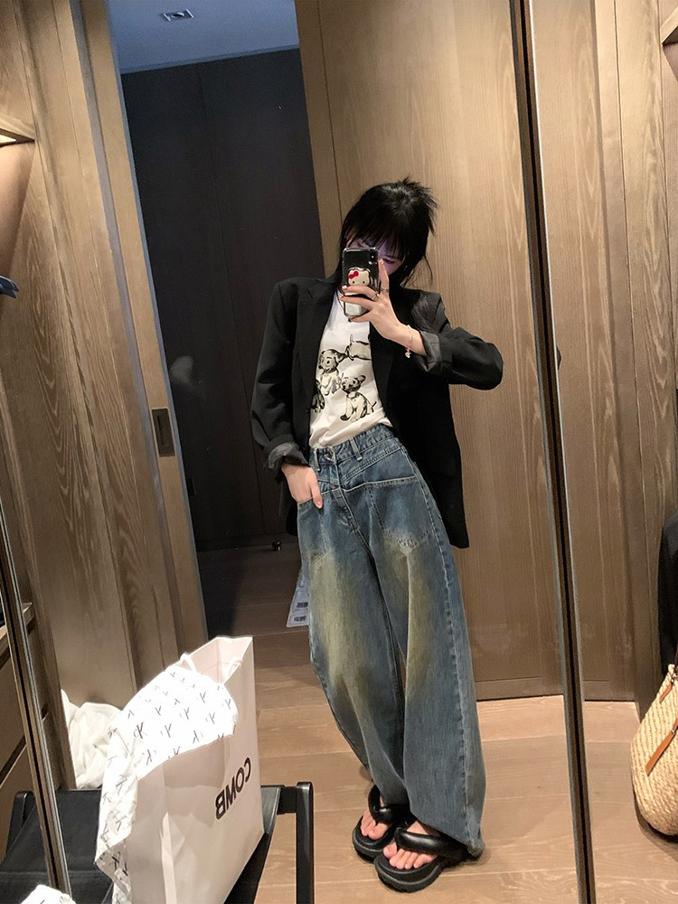 Длинные ретро приталенные джинсы, летние штаны, свободный крой