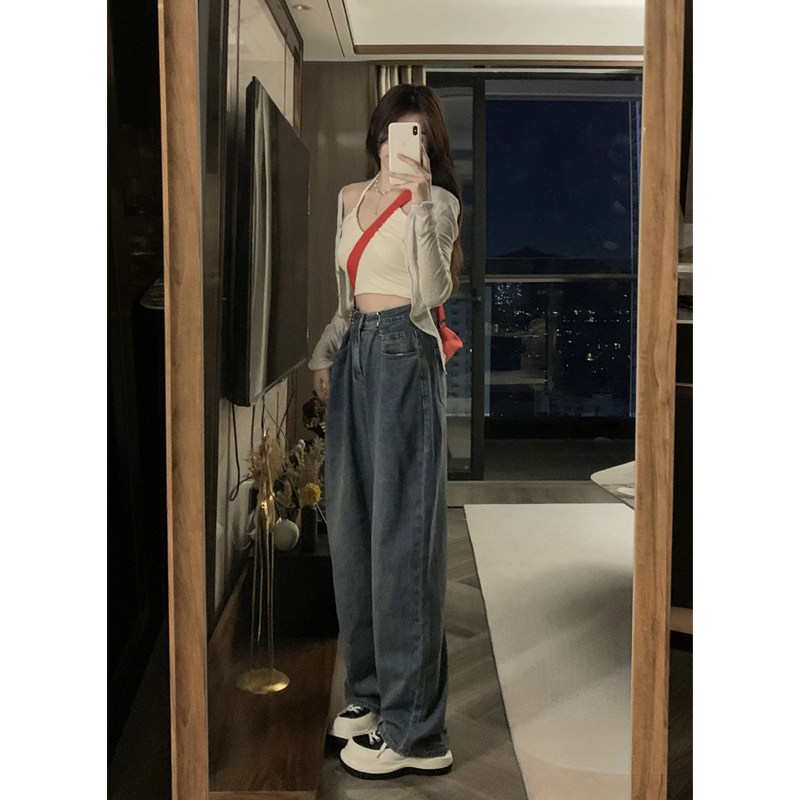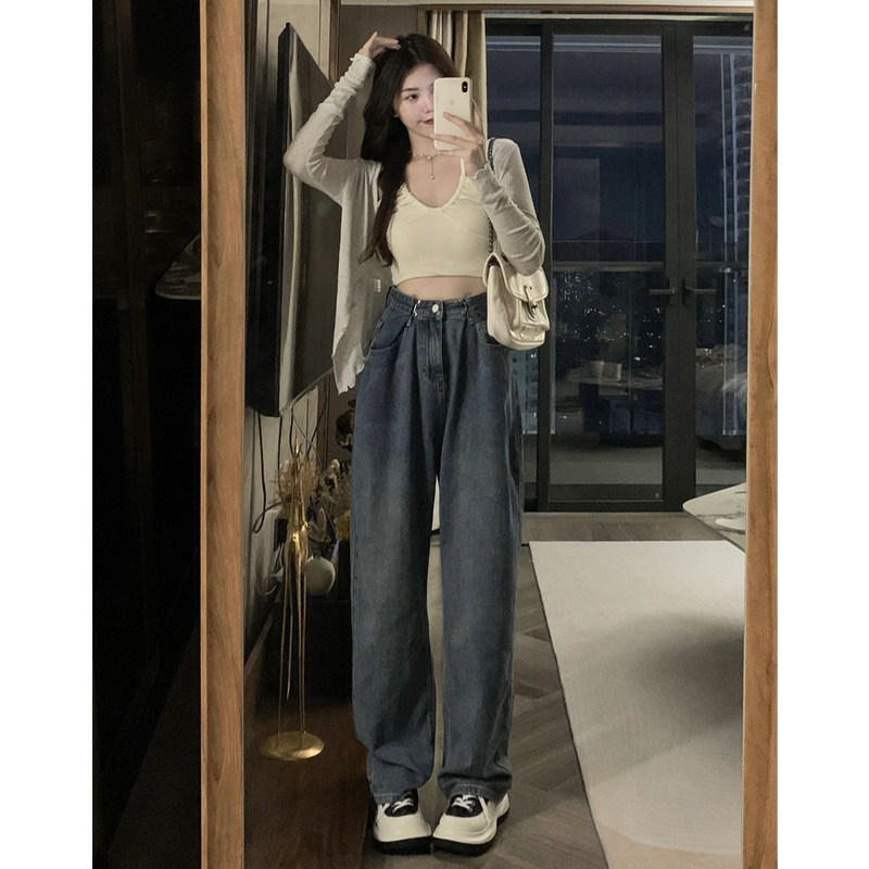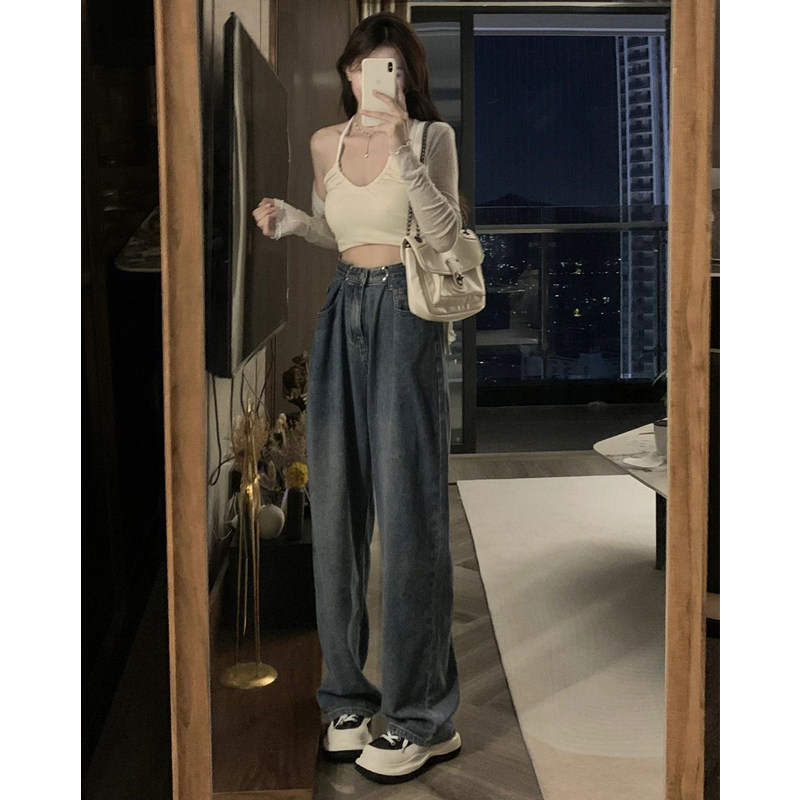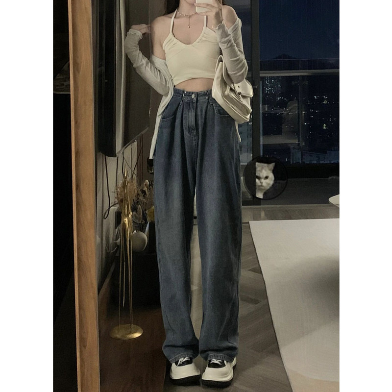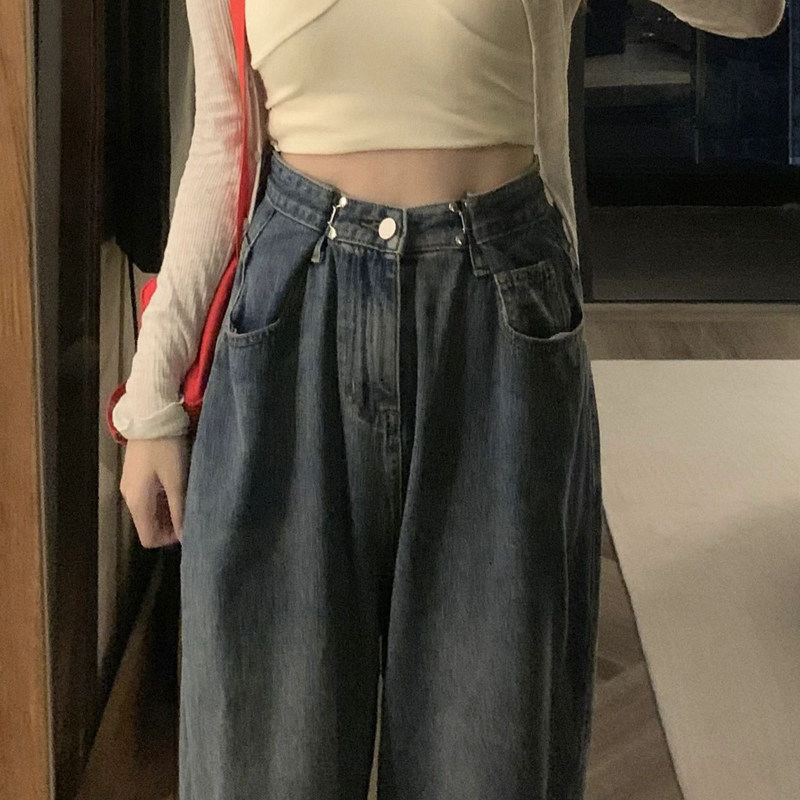 Ретро осенние джинсы, приталенные штаны, в американском стиле, большой размер, высокая талия, свободный прямой крой, оверсайз