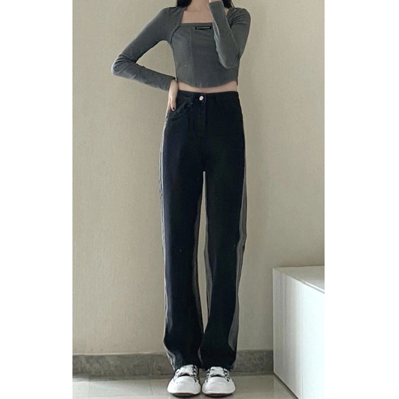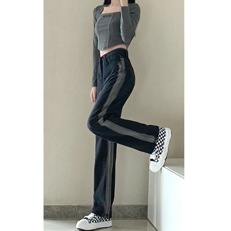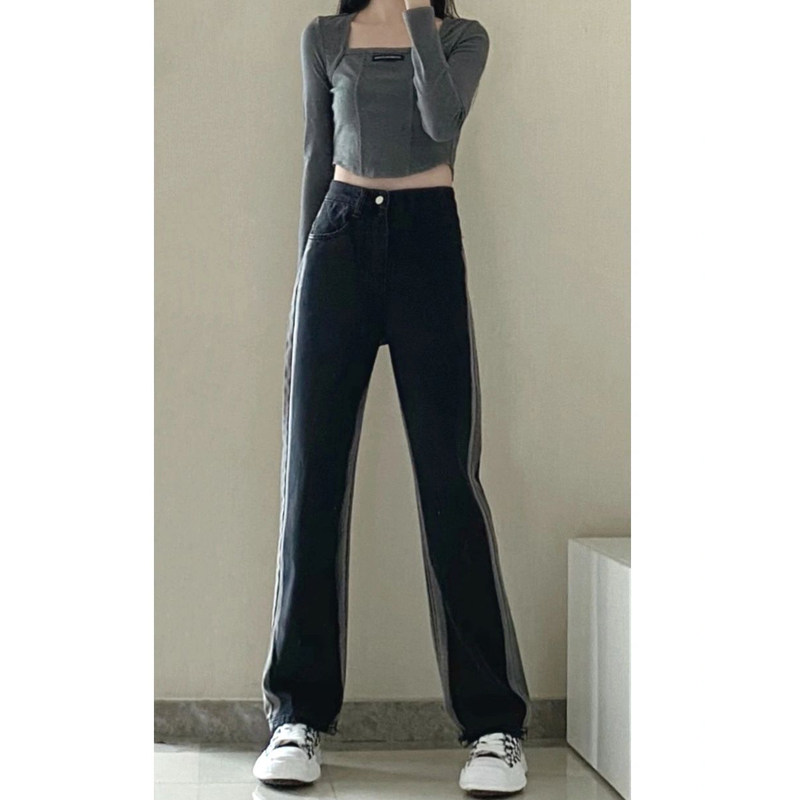 Tide, сексуальные осенние джинсы, приталенные штаны, большой размер, высокая талия, свободный прямой крой