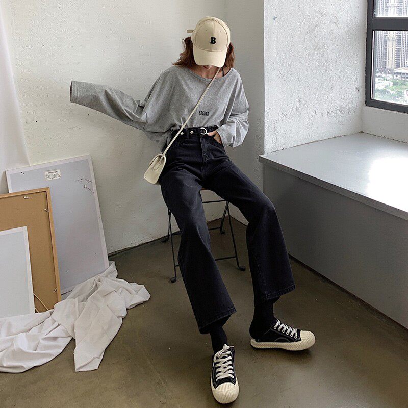 Зимние черные флисовые демисезонные джинсы с начесом, штаны, леггинсы, по фигуре, свободный прямой крой, высокая талия