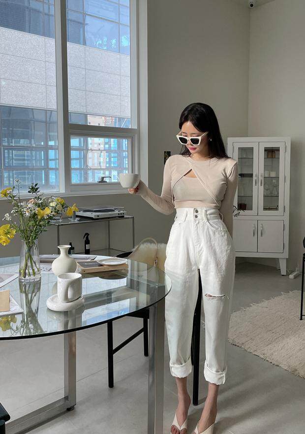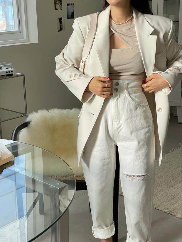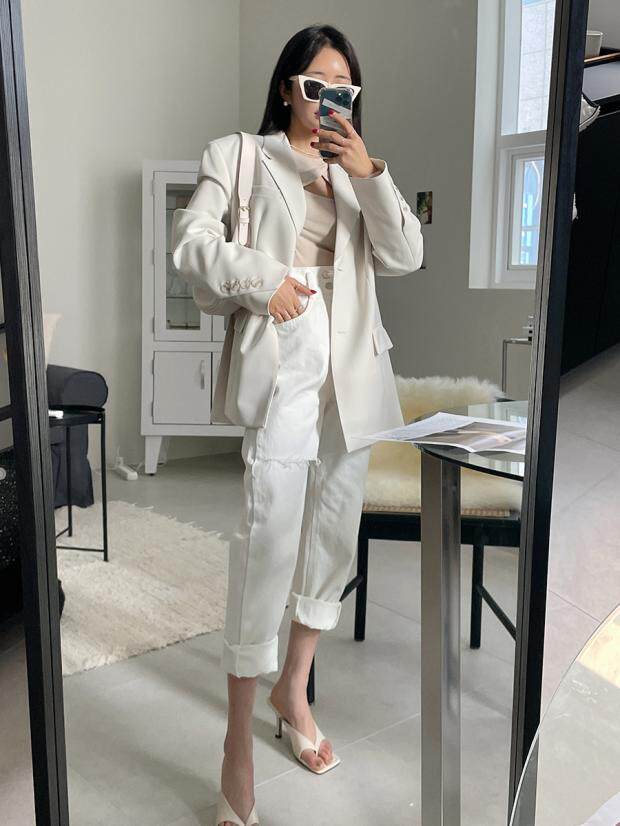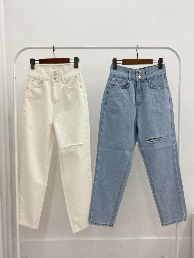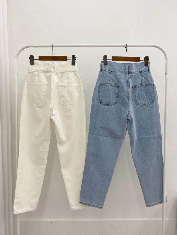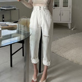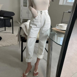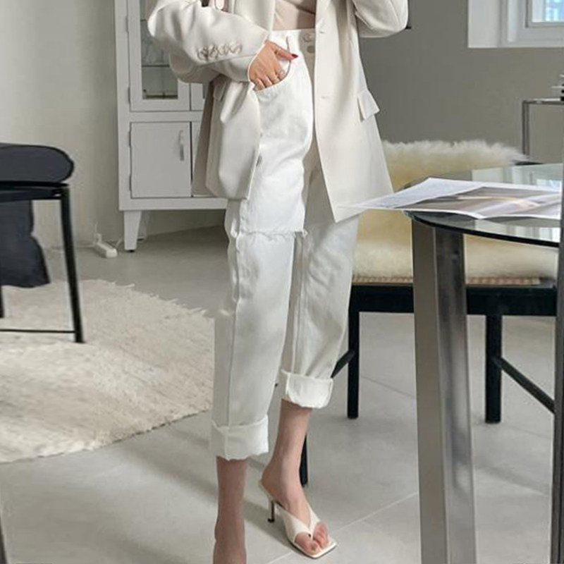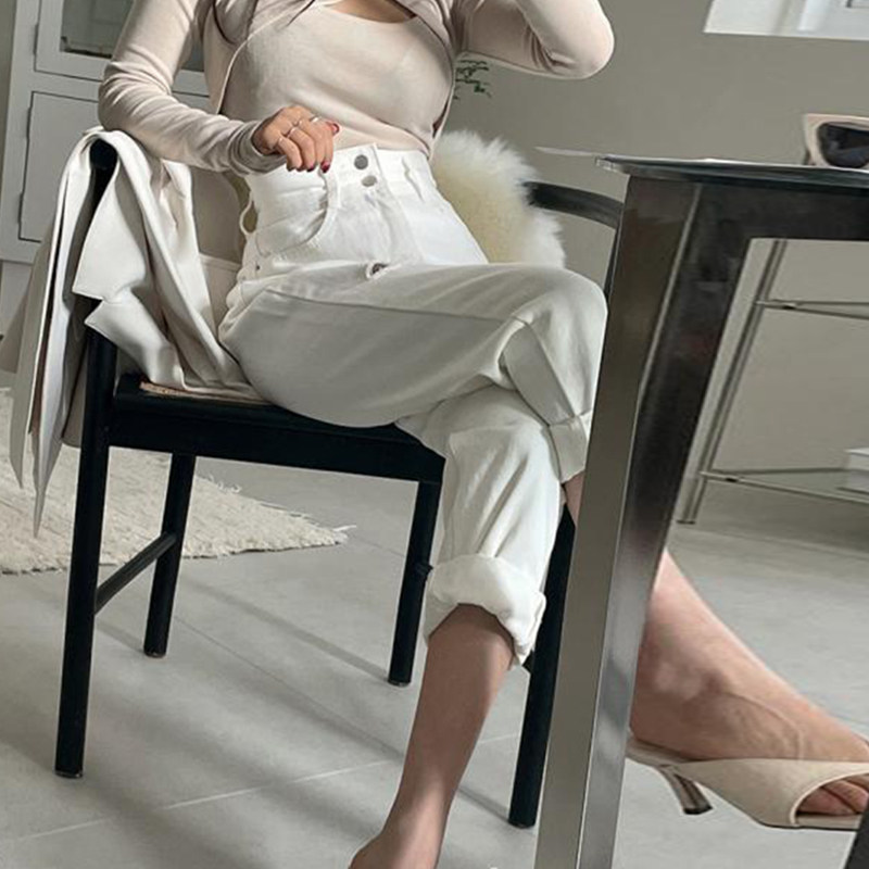 Приталенные белые джинсы, штаны, в корейском стиле, осенние, высокая талия, свободный крой
