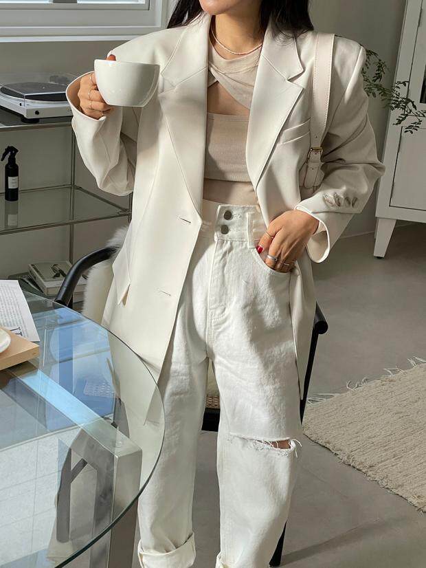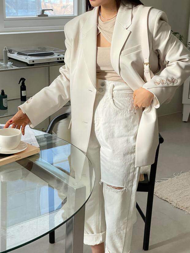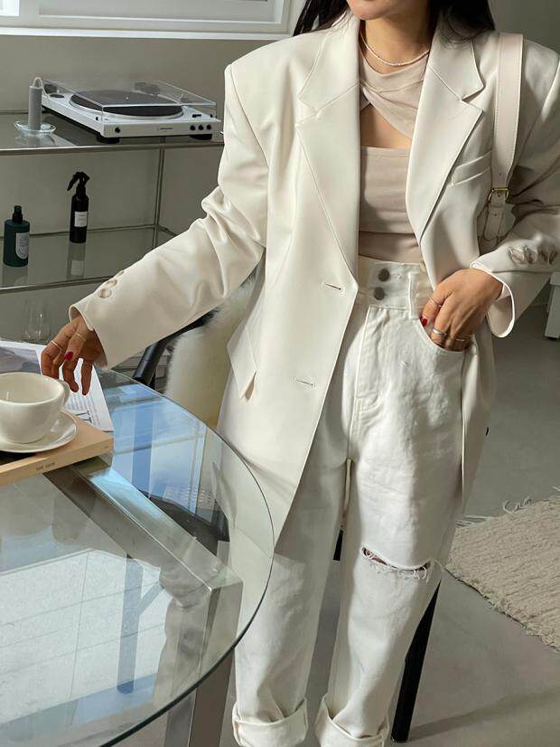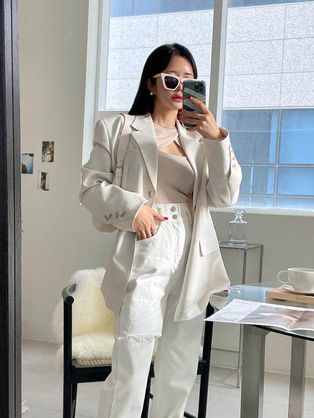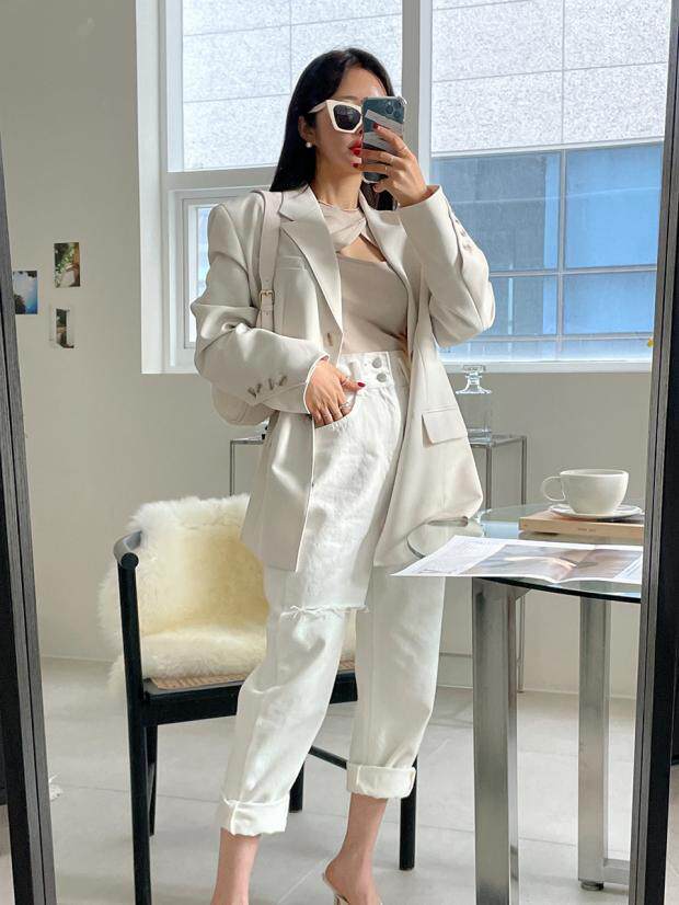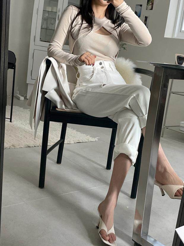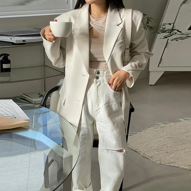 Приталенные белые джинсы, штаны, в корейском стиле, осенние, высокая талия, свободный крой