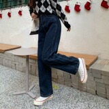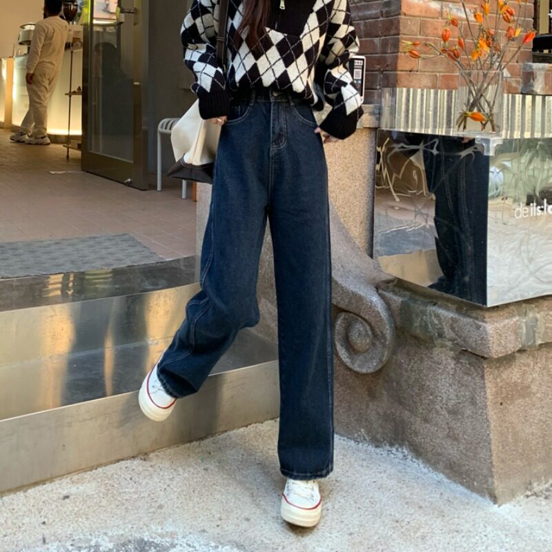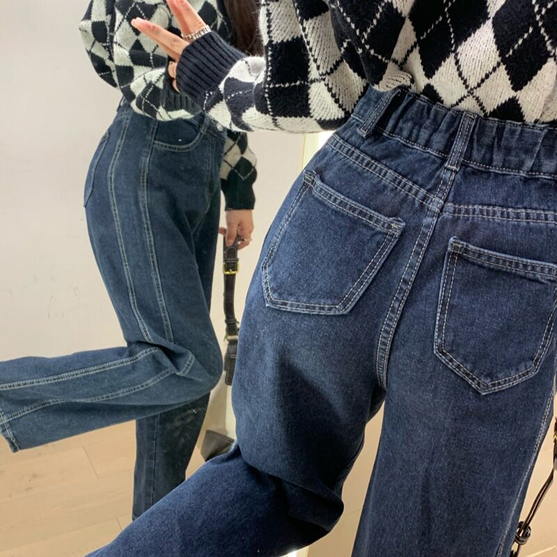 Осенние джинсы для отдыха, штаны, высокая талия, в корейском стиле, оверсайз, свободный прямой крой