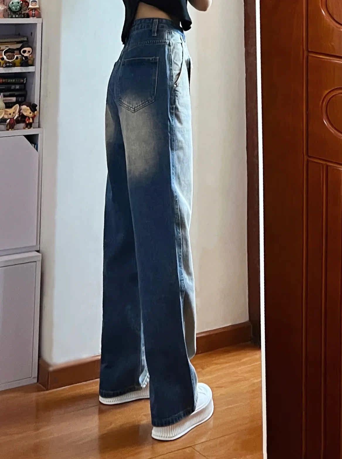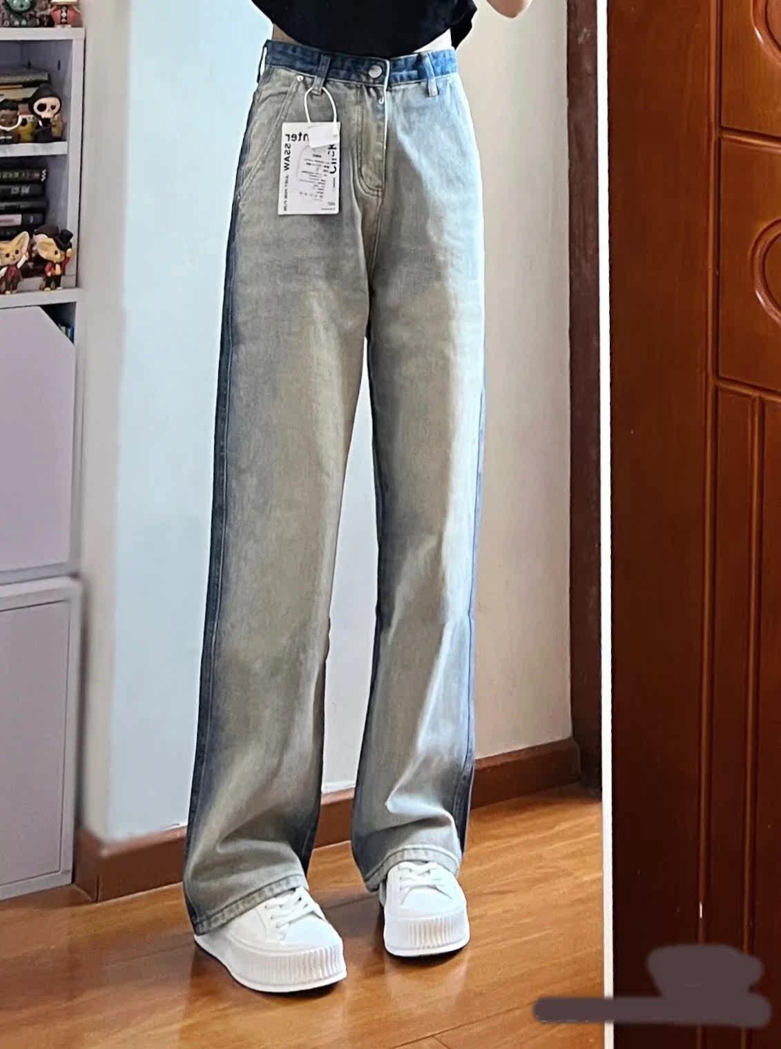 Ретро осенние джинсы, штаны, брендовые леггинсы, градиент, высокая талия, свободный крой