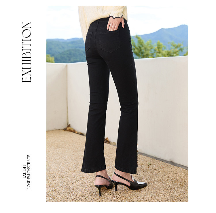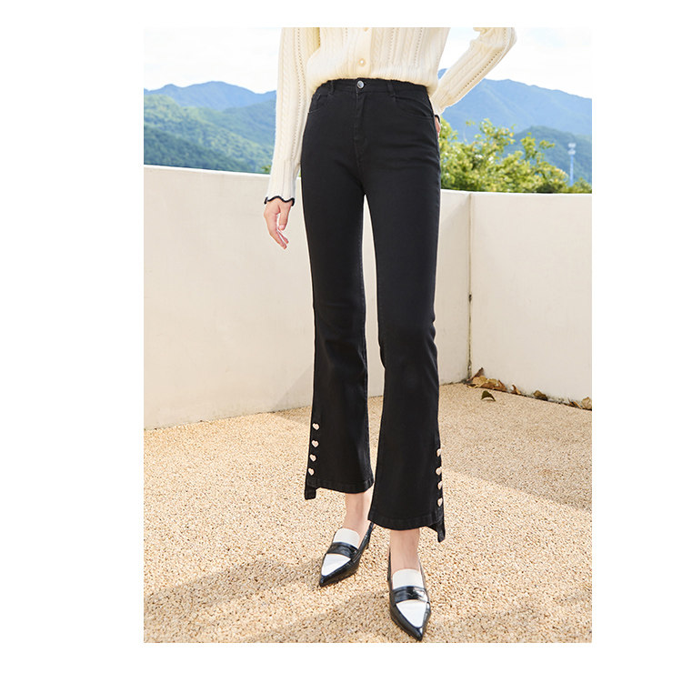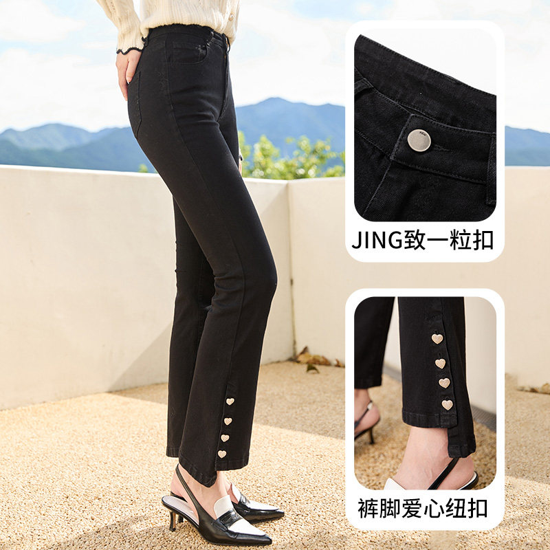 Джинсы, осенние черные штаны для отдыха, высокая талия, по фигуре