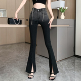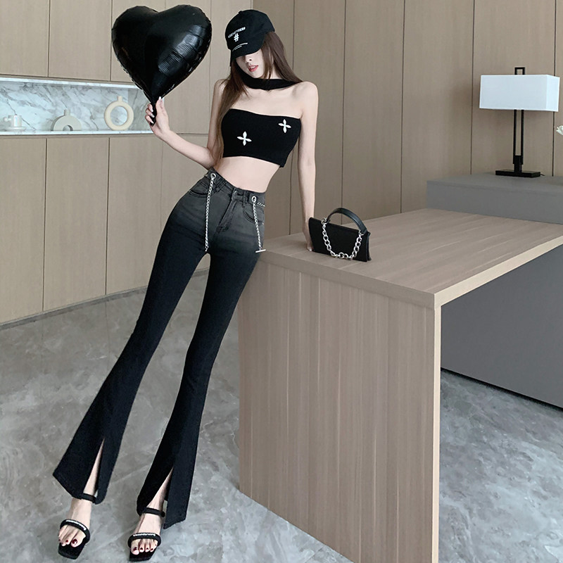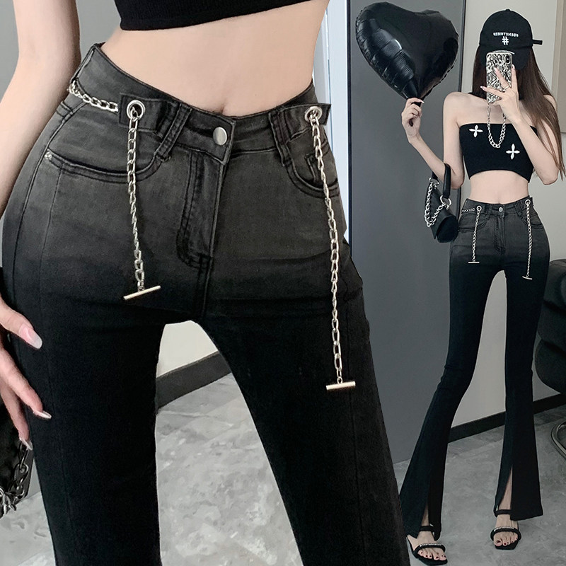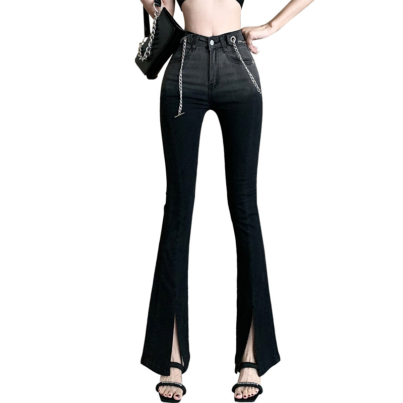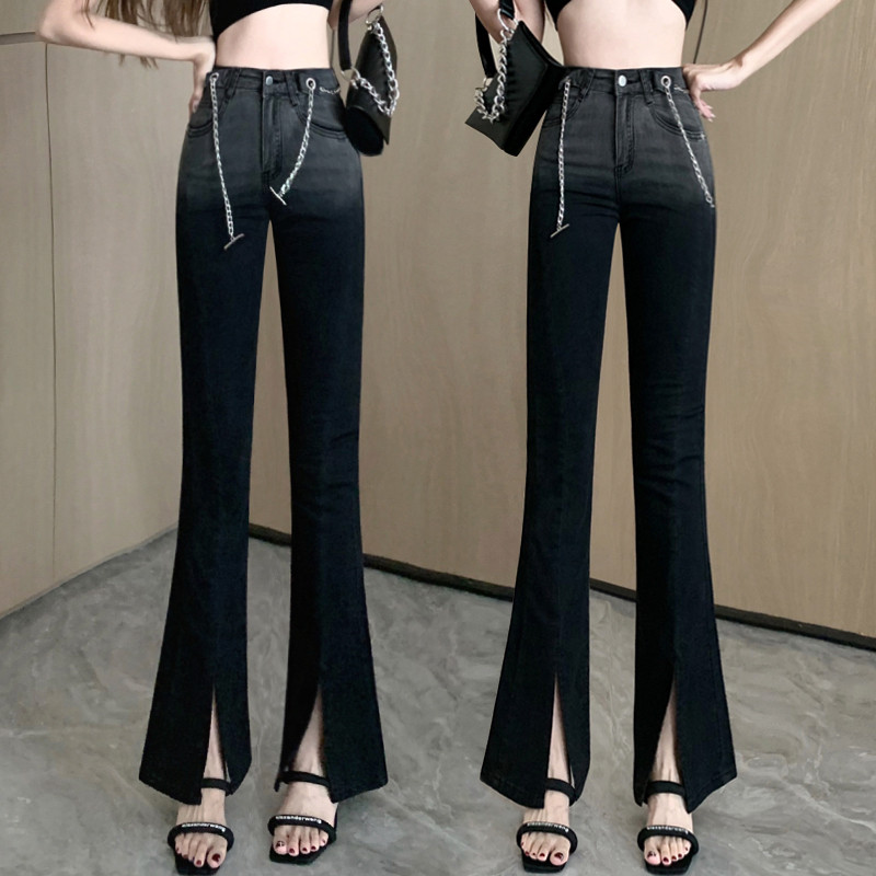 Джинсы, осенние штаны, модные черные штаны-клёш, в корейском стиле, градиент, высокая талия, по фигуре