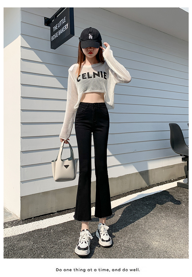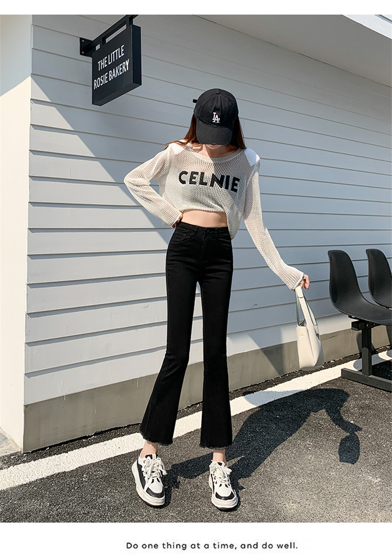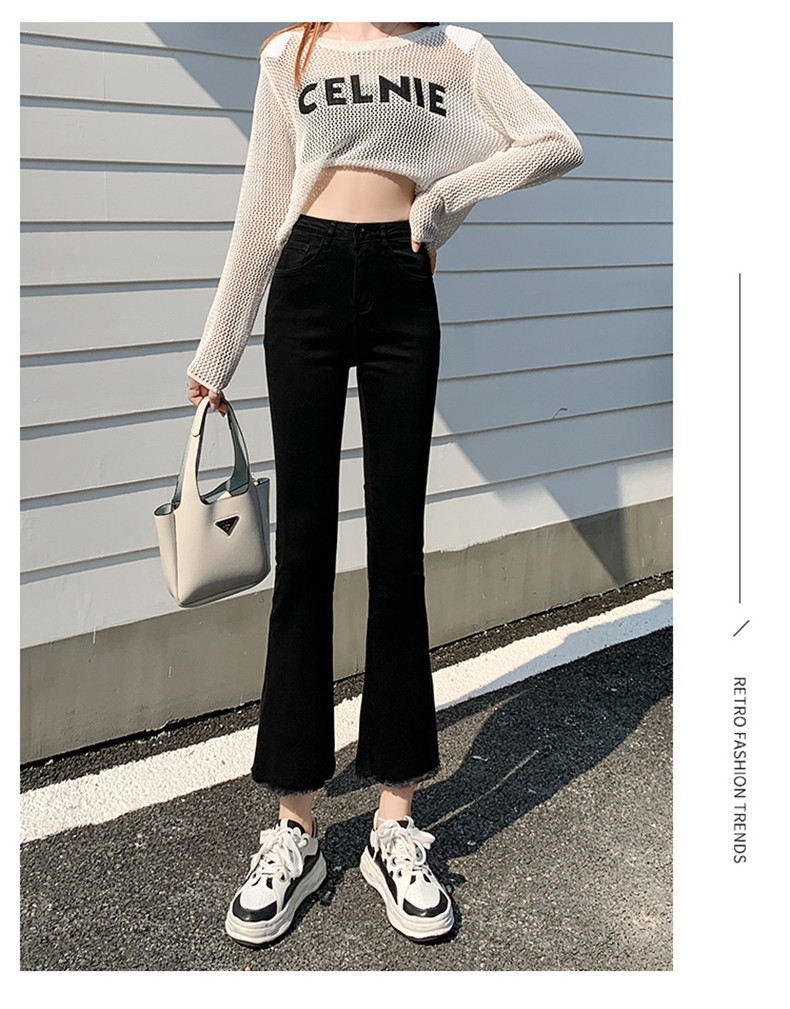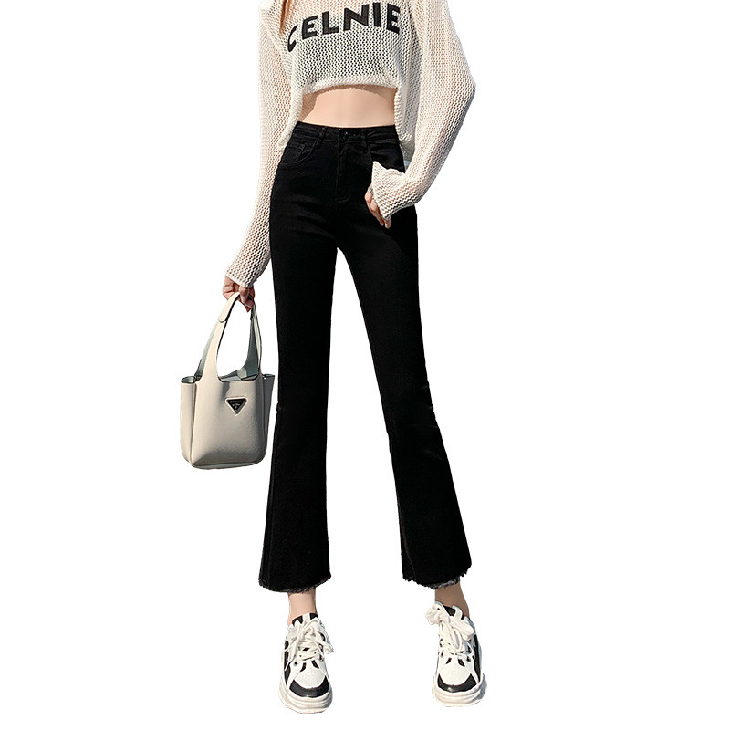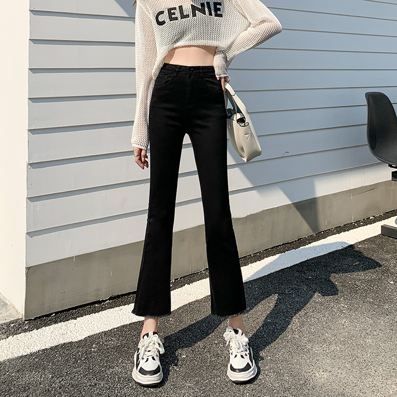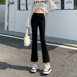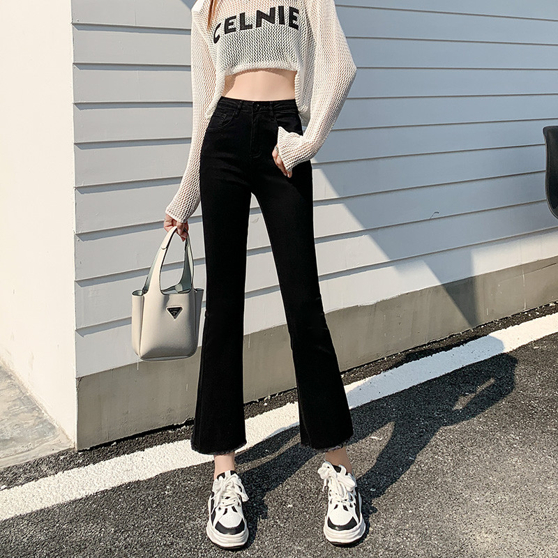 Черные демисезонные приталенные джинсы, штаны, эластичные штаны-клёш, подходит для подростков