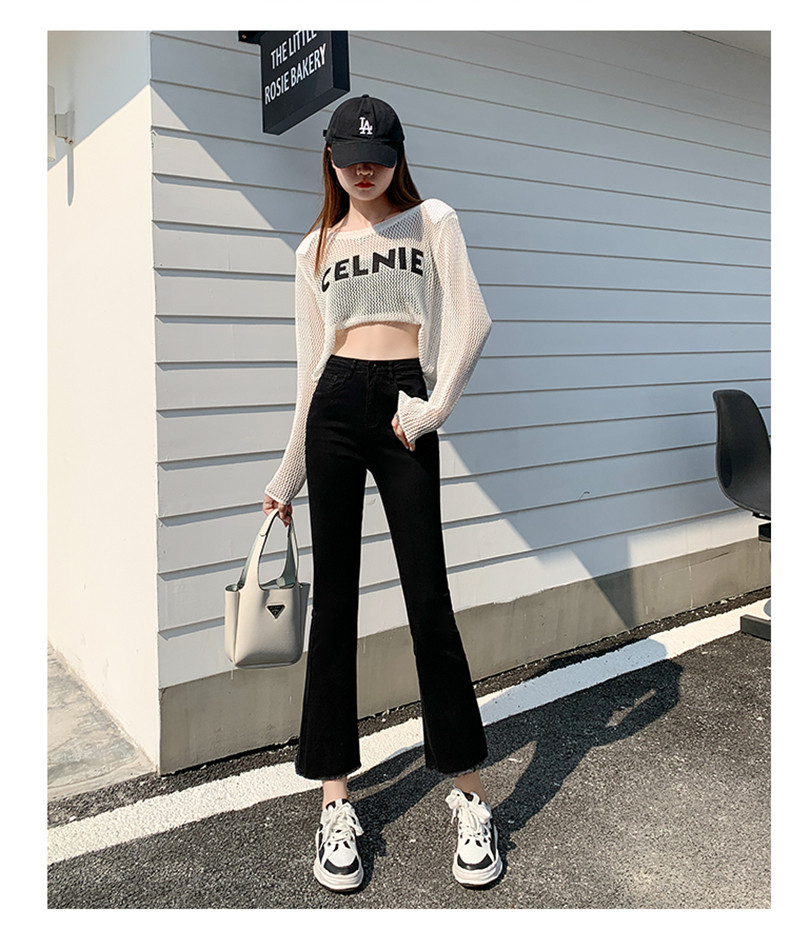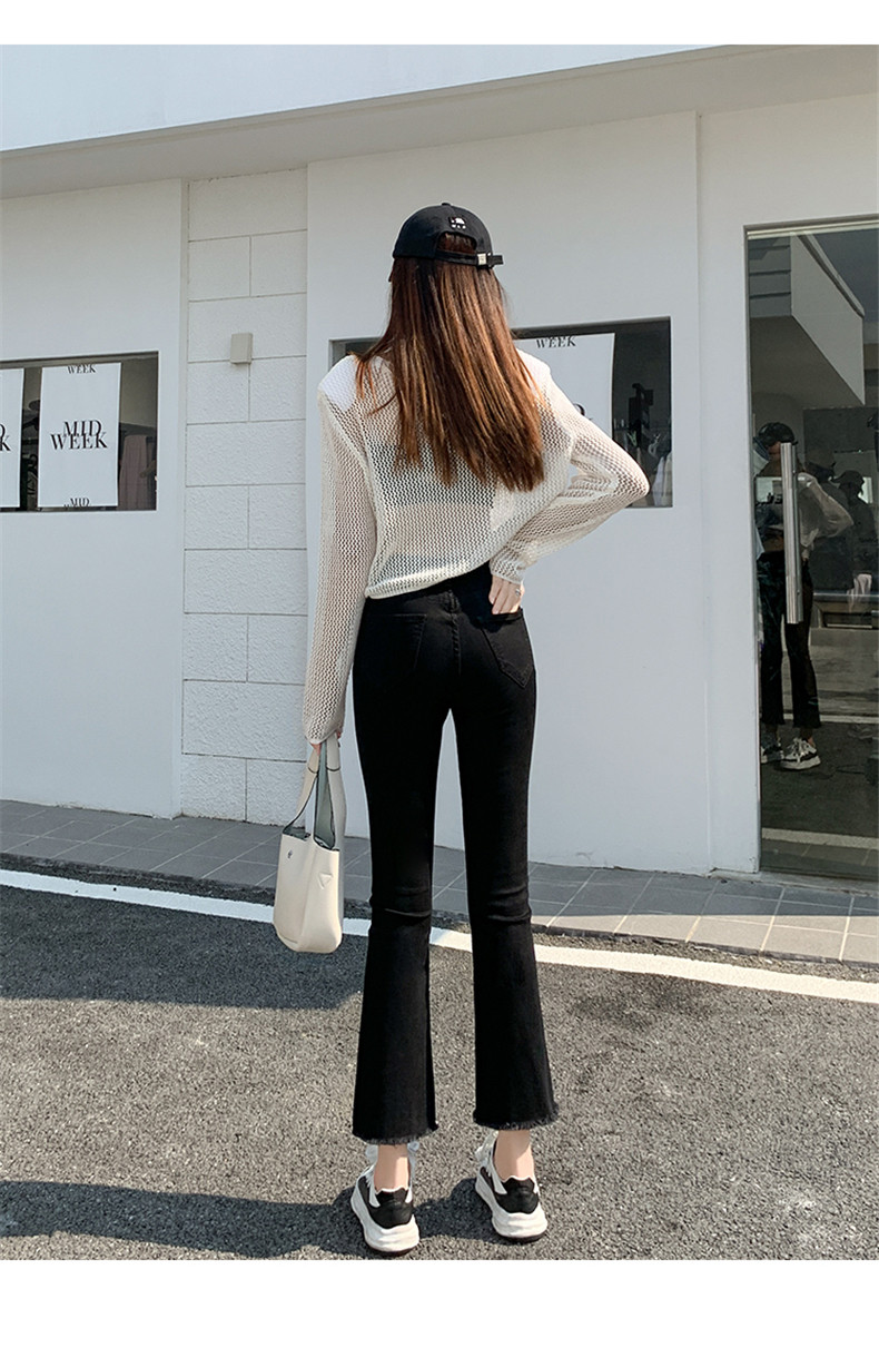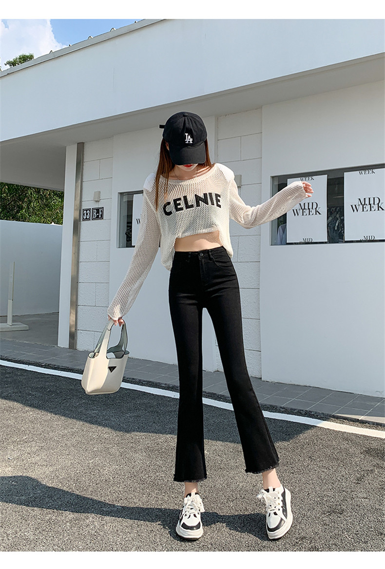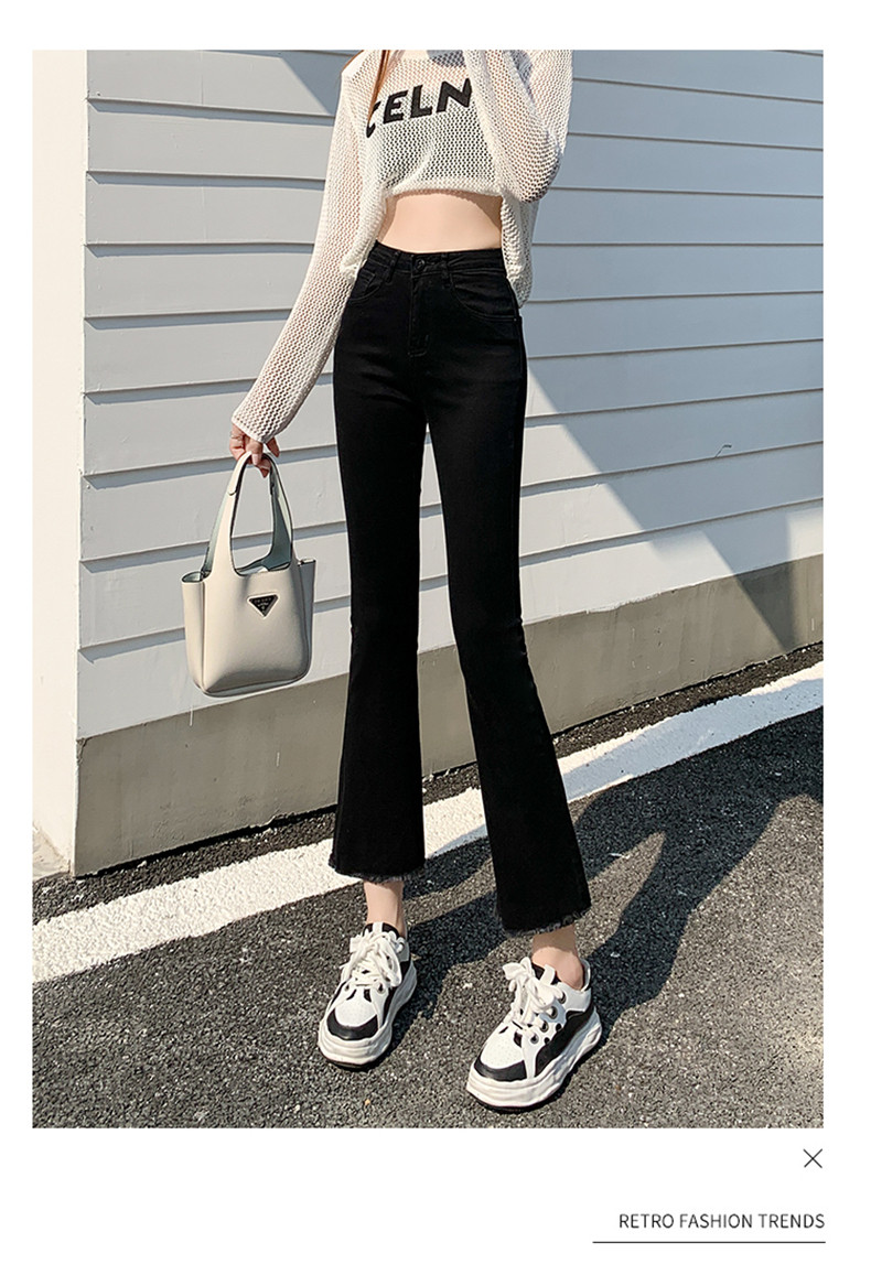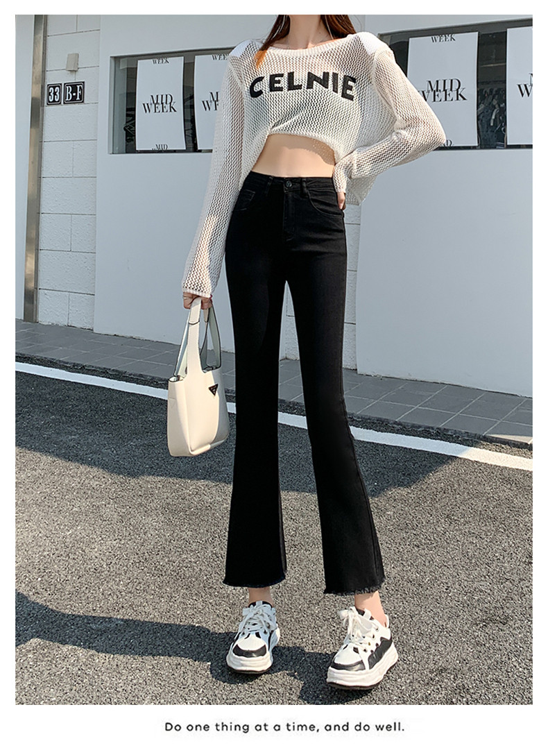 Черные демисезонные приталенные джинсы, штаны, эластичные штаны-клёш, подходит для подростков
