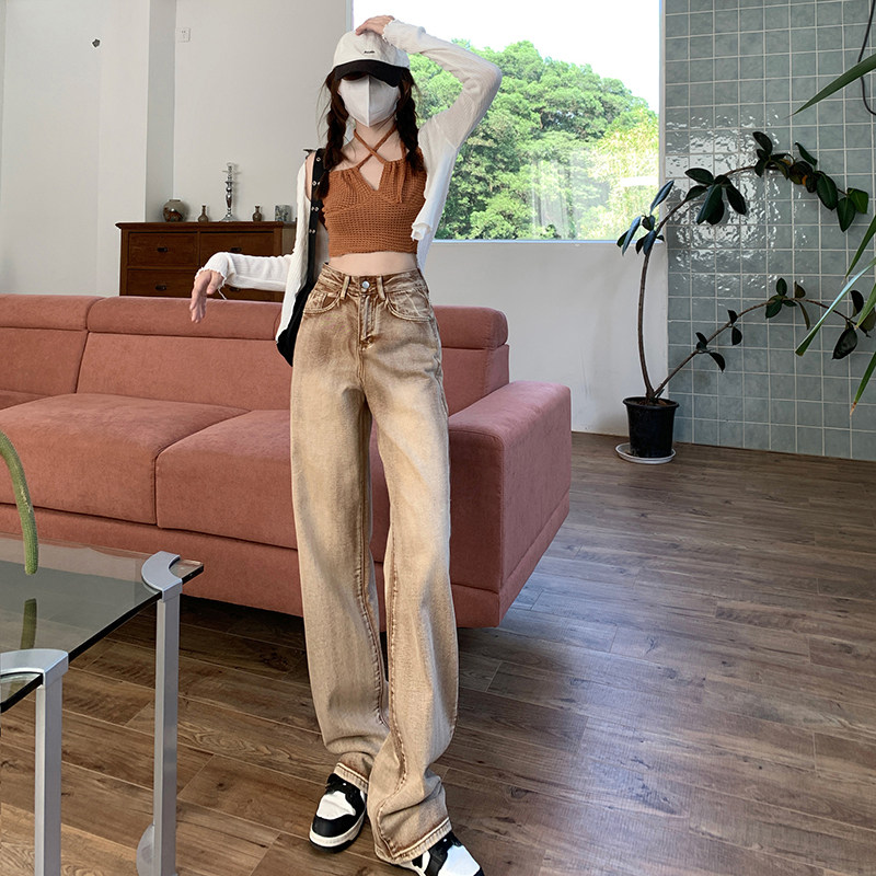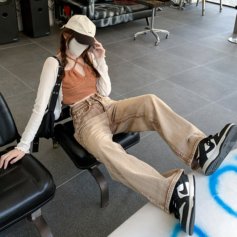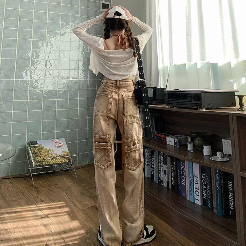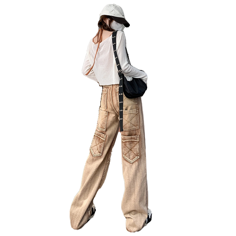 Ретро джинсы, дизайнерские штаны, в американском стиле, оверсайз, свободный прямой крой