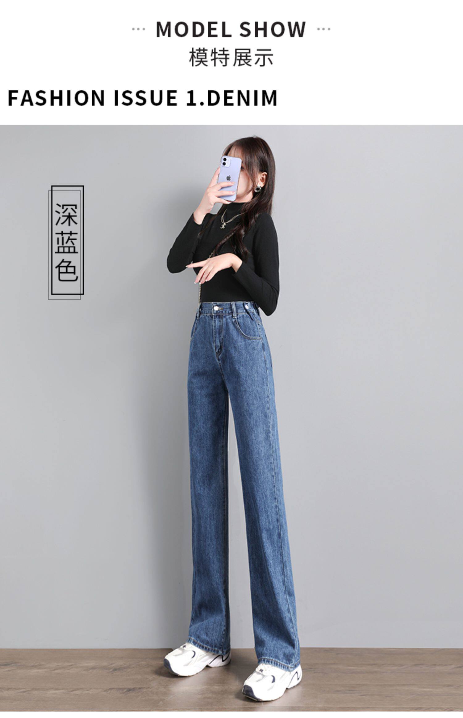 Осенние джинсы, штаны, коллекция 2023, свободный прямой крой, высокая талия, в корейском стиле