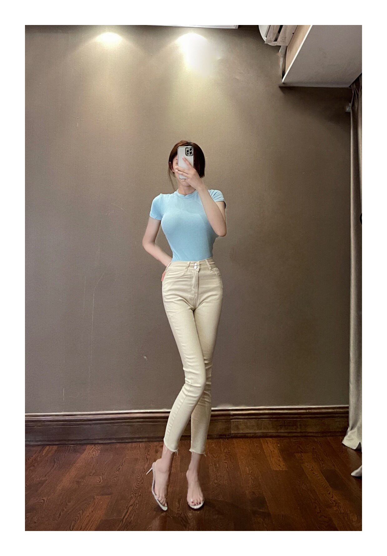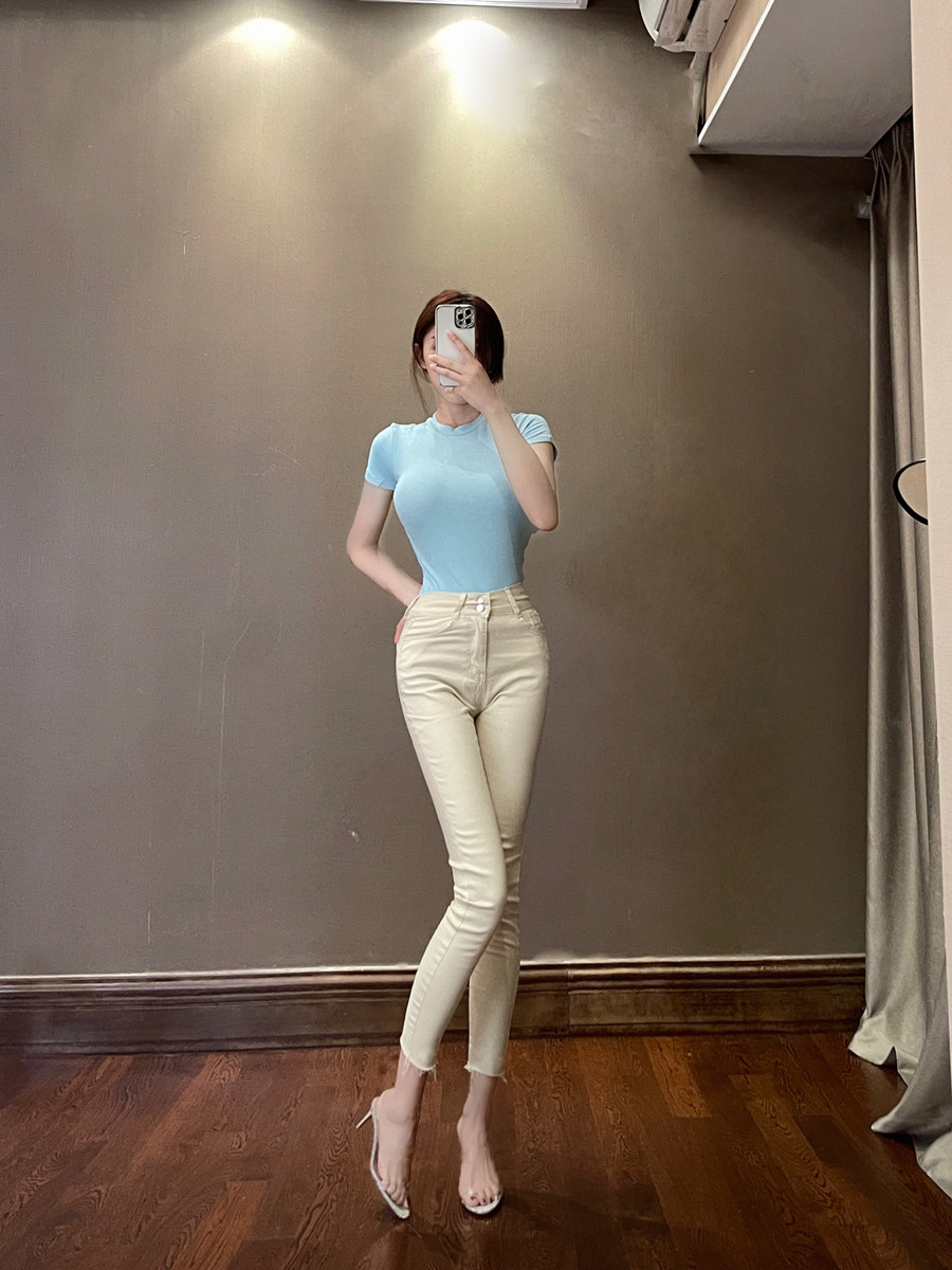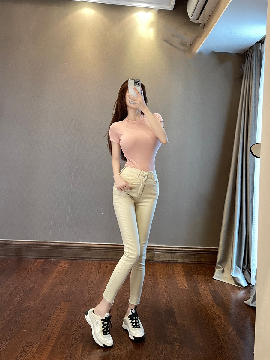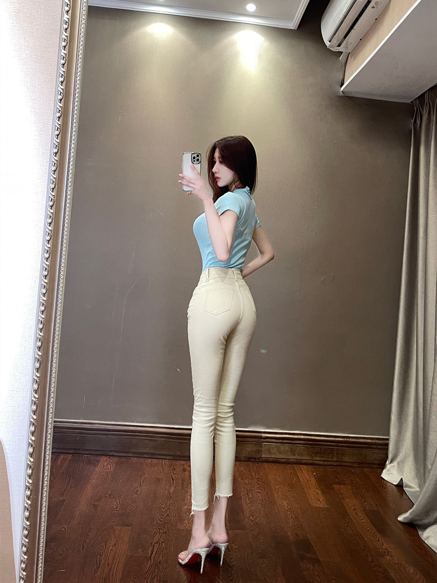 Кремовые джинсы, универсальные палочки для еды, сексуальный карандаш, штаны, высокая талия