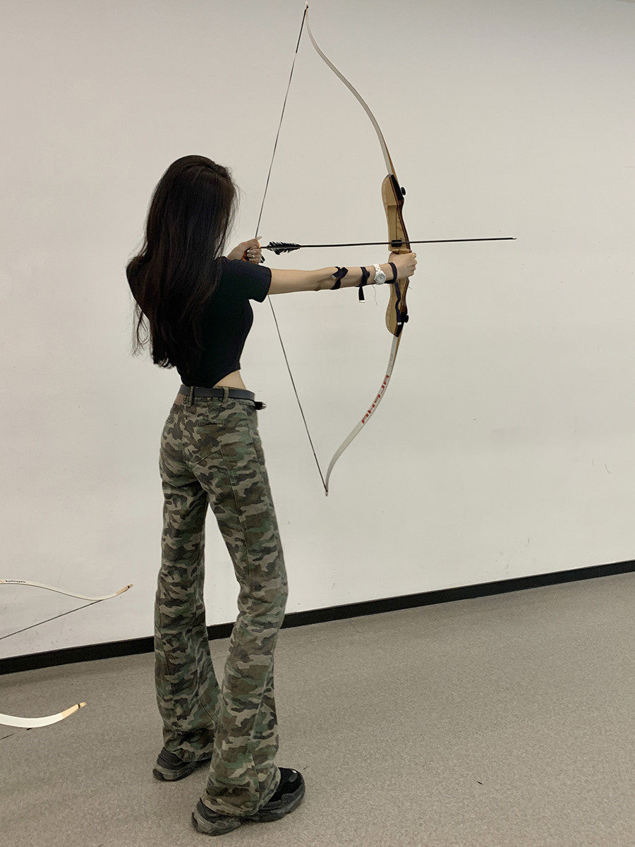 Tide, ретро камуфляжные джинсовые осенние демисезонные длинные приталенные штаны, в американском стиле, высокая талия