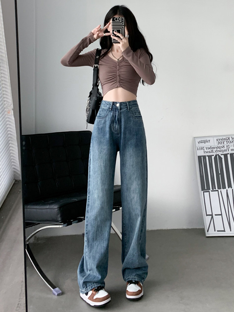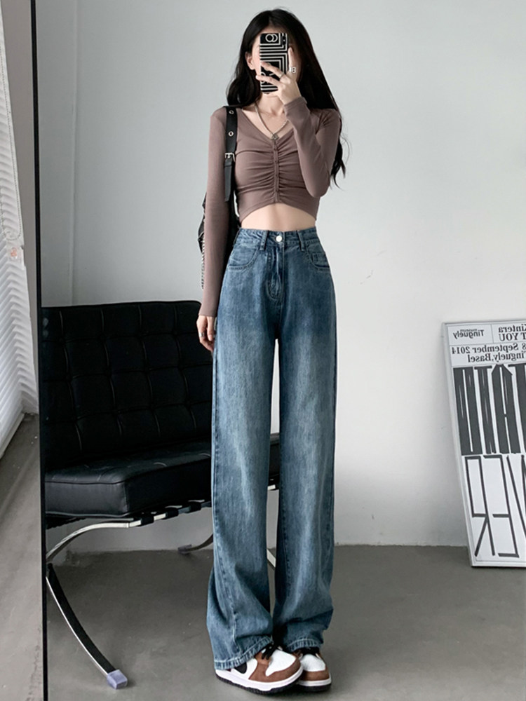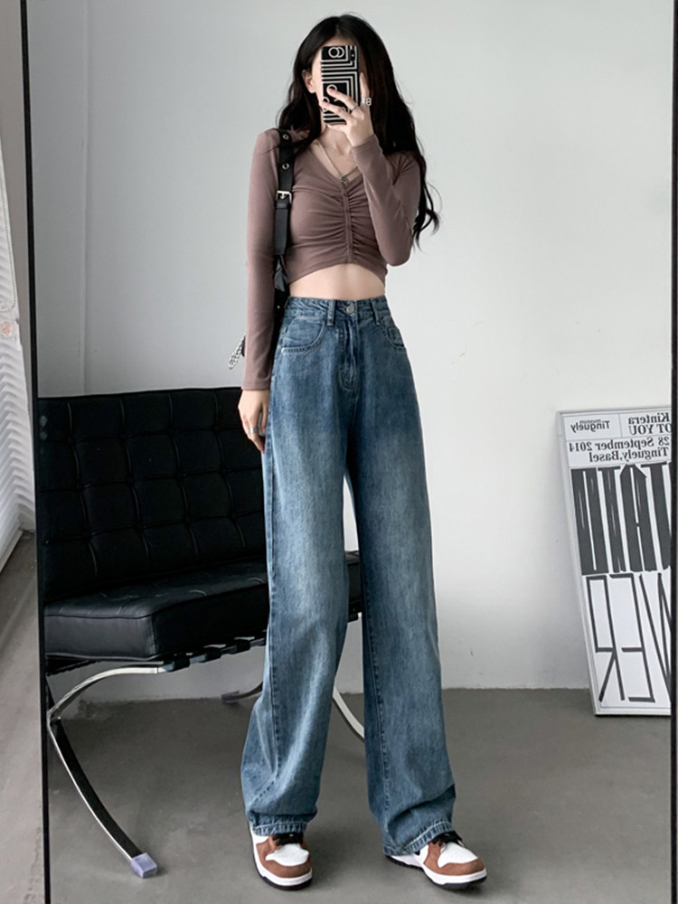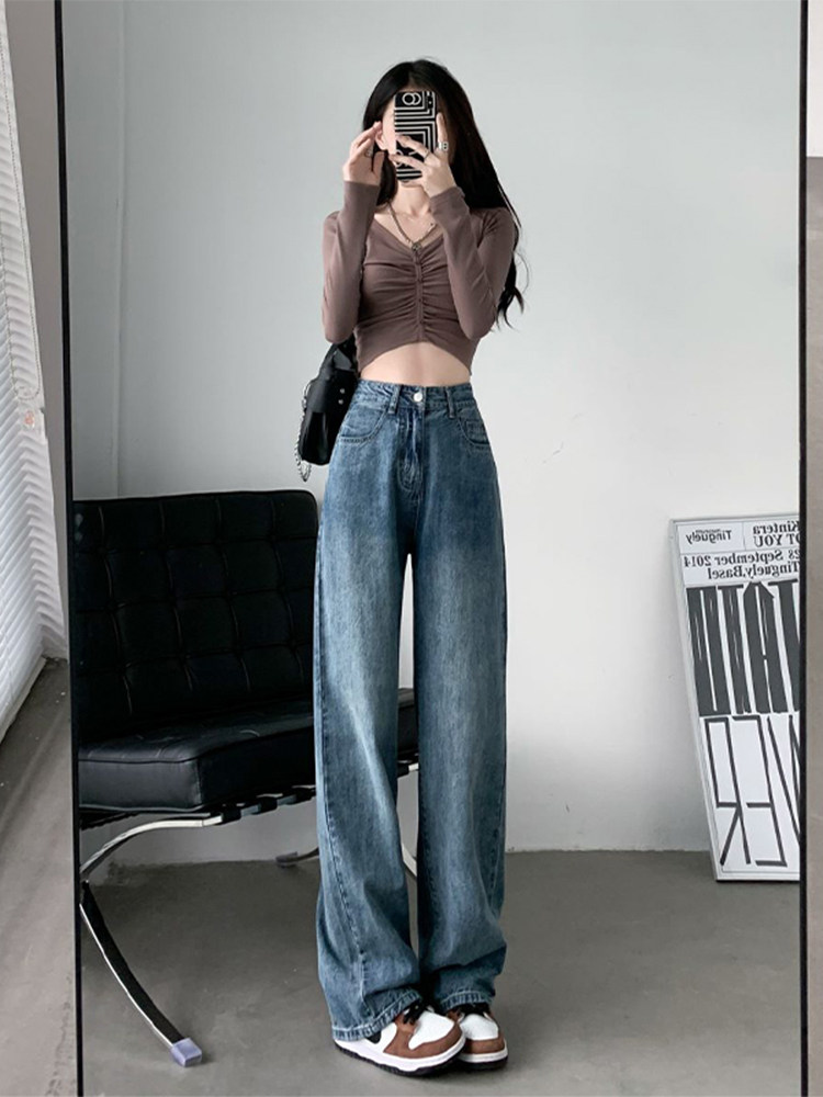 Ретро прямые свободные джинсы, осенние тонкие штаны, высокая талия, свободный крой, 2024 года