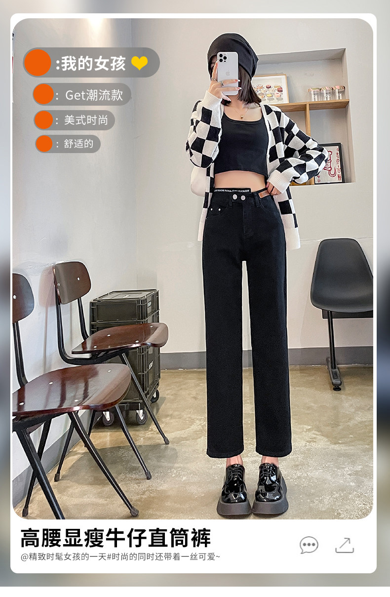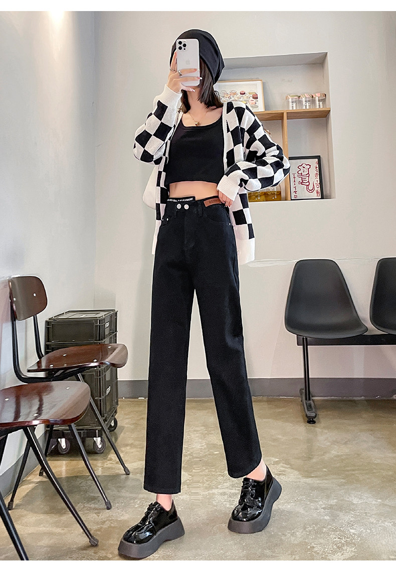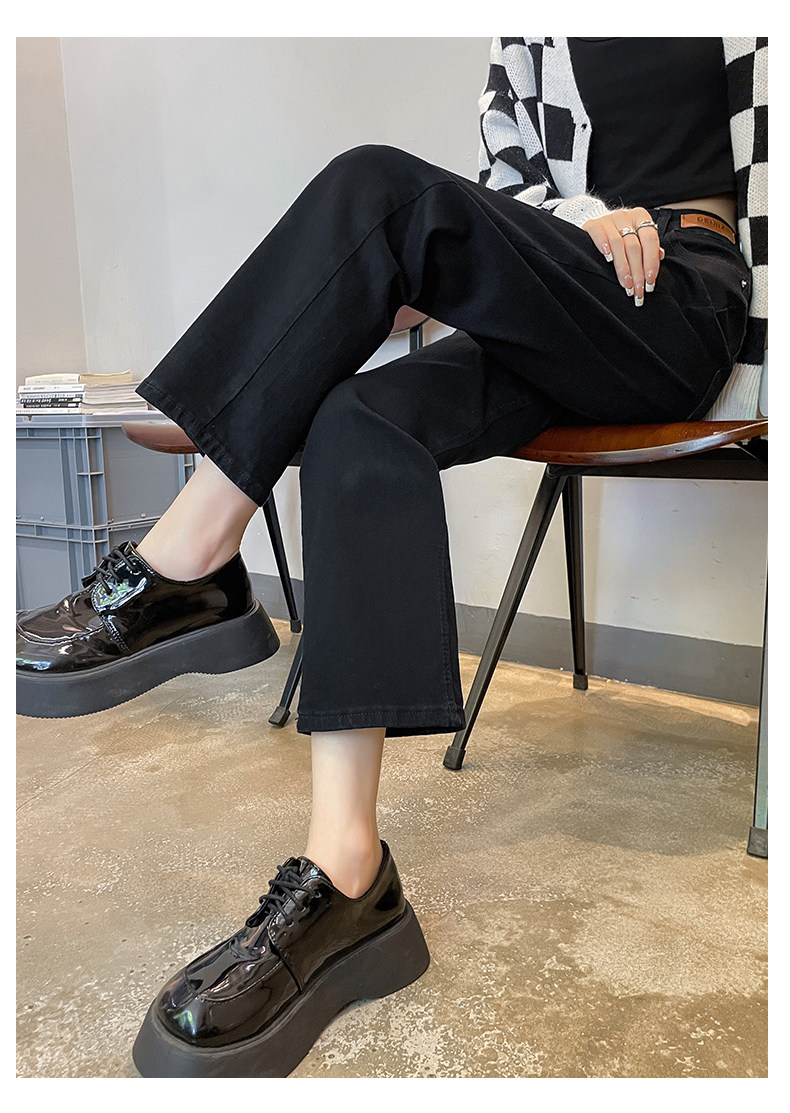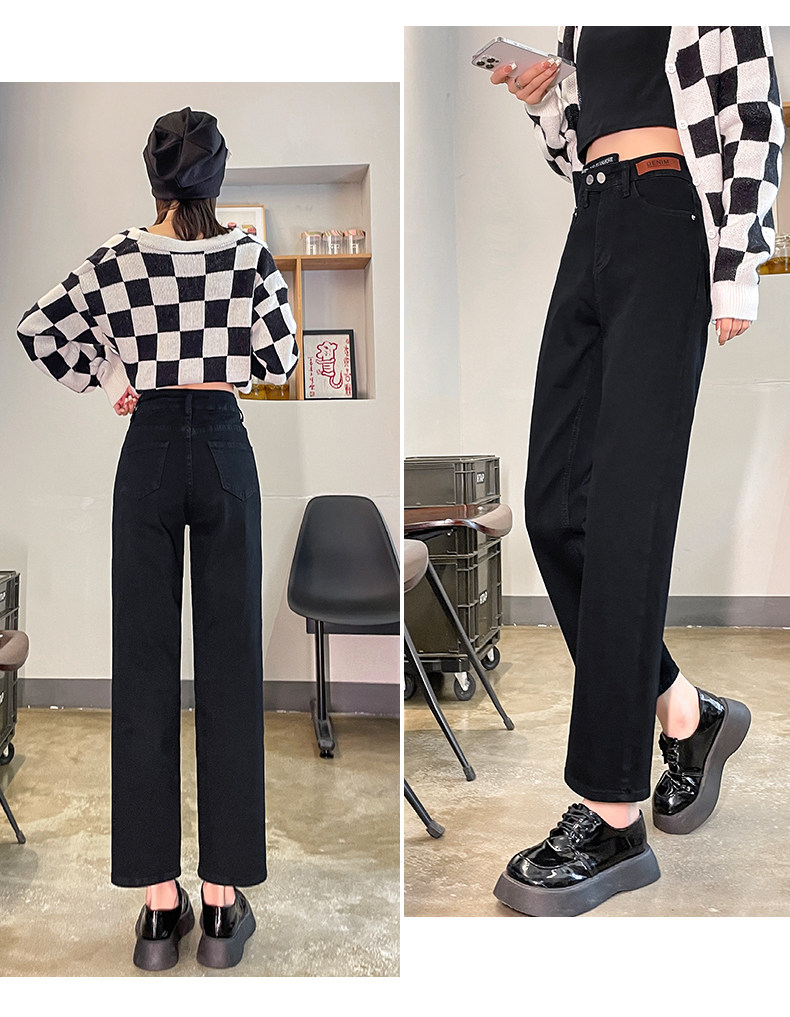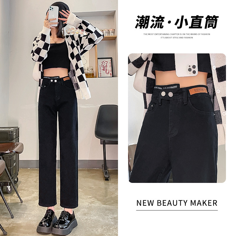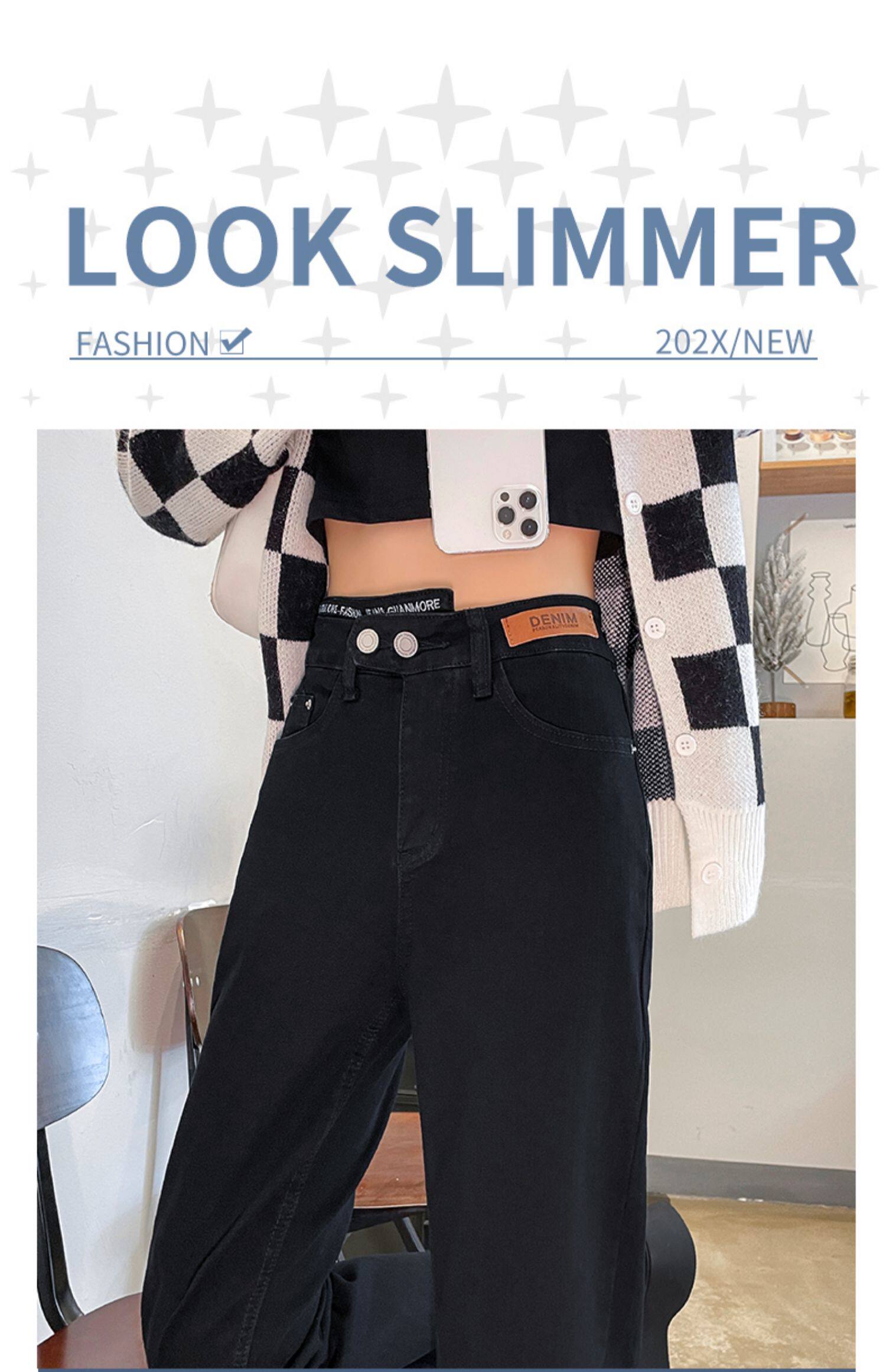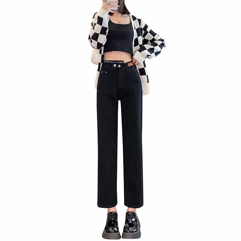 Черные осенние прямые свободные джинсы, приталенные демисезонные штаны, высокая талия, по фигуре, подходит для подростков