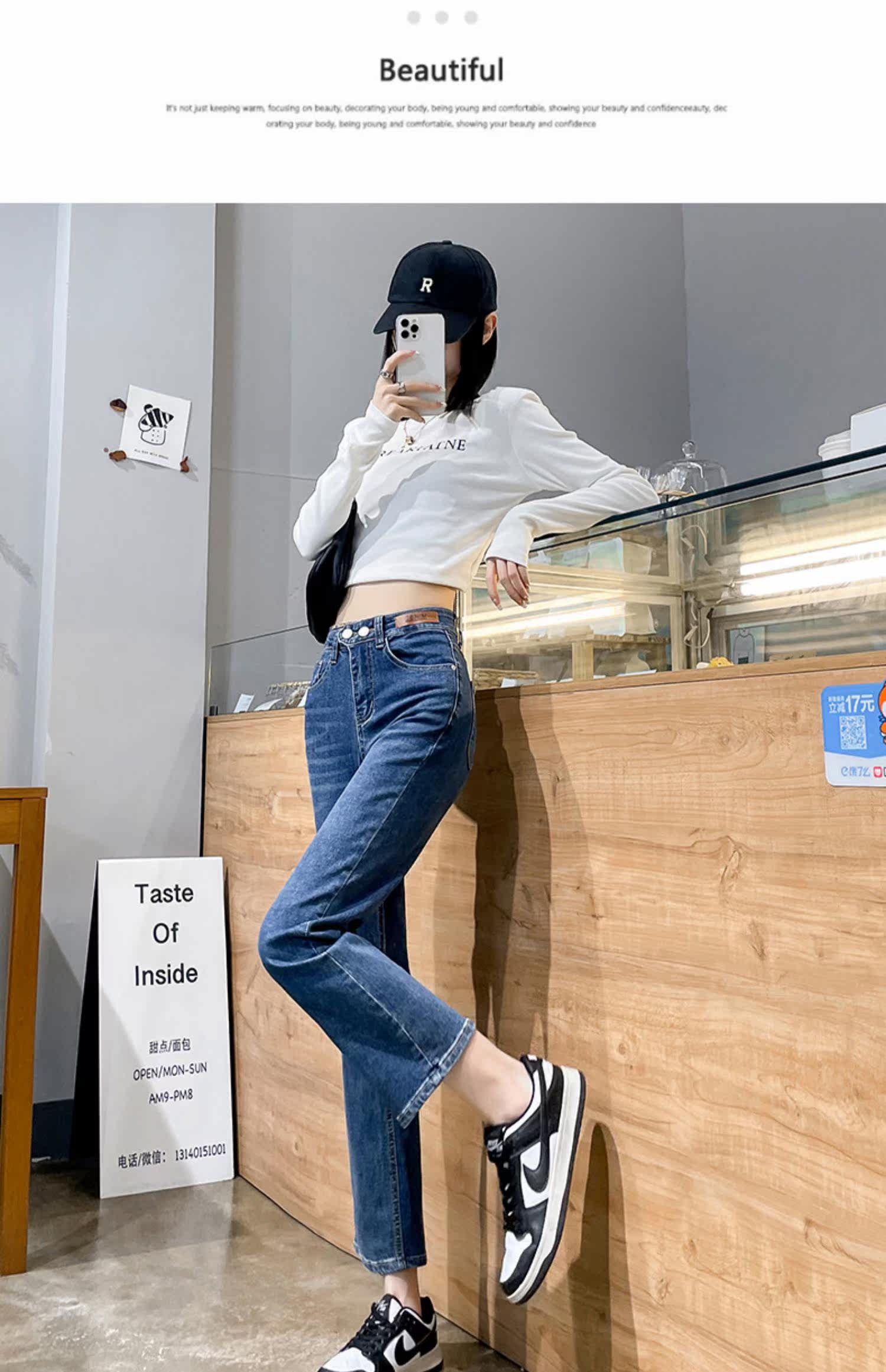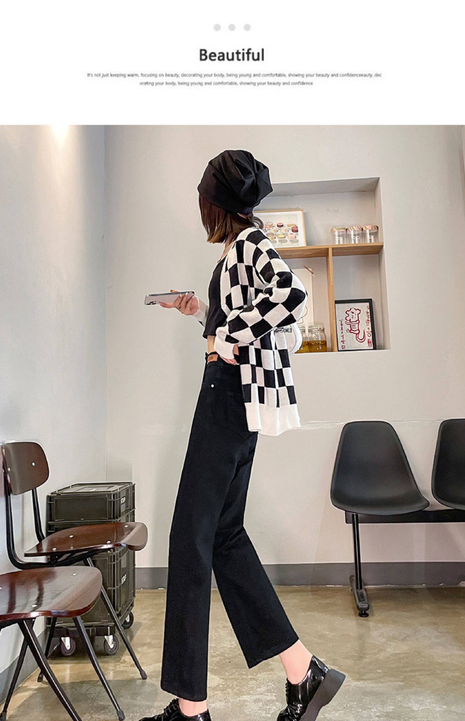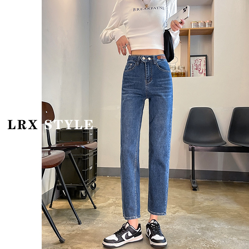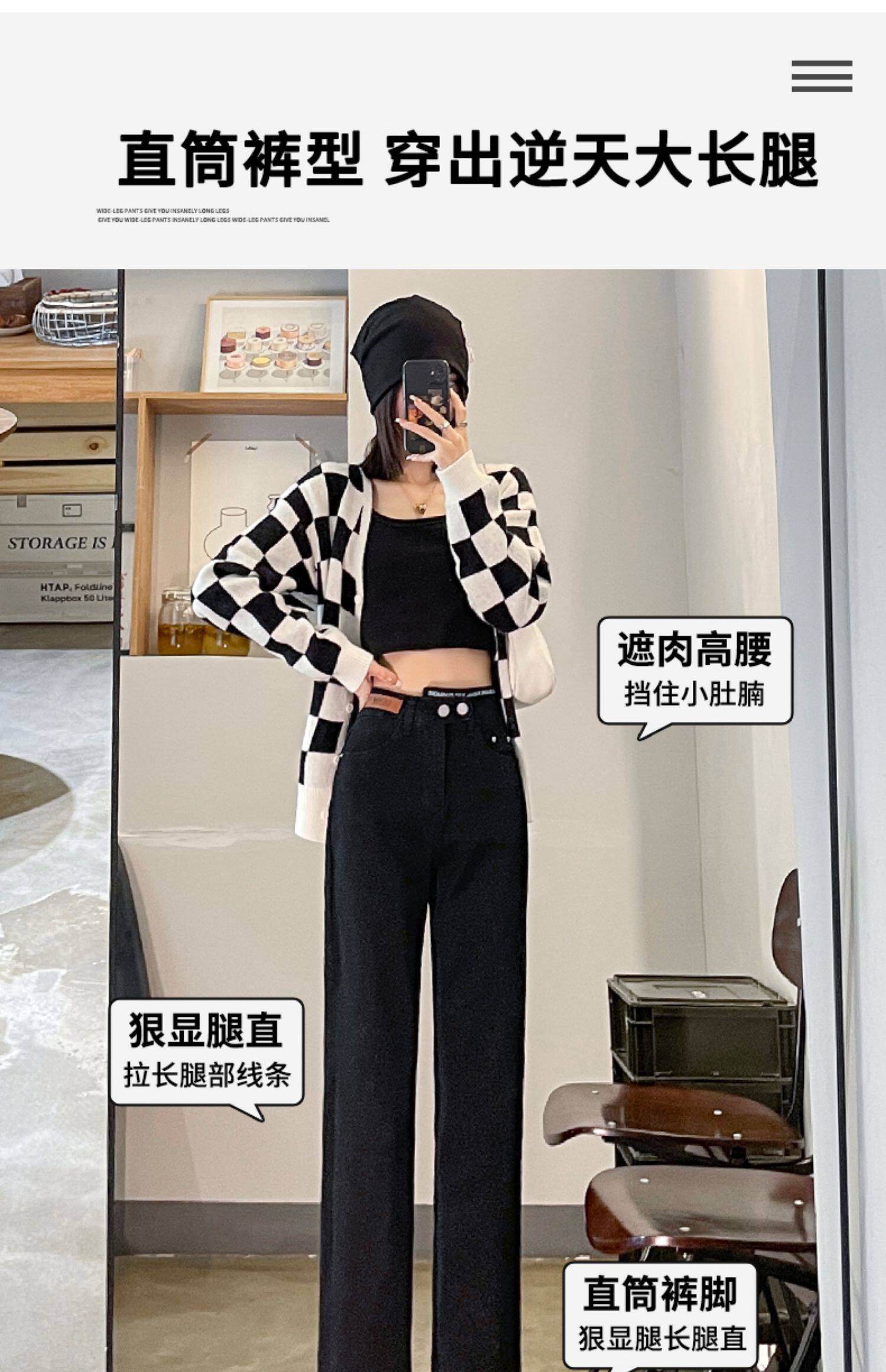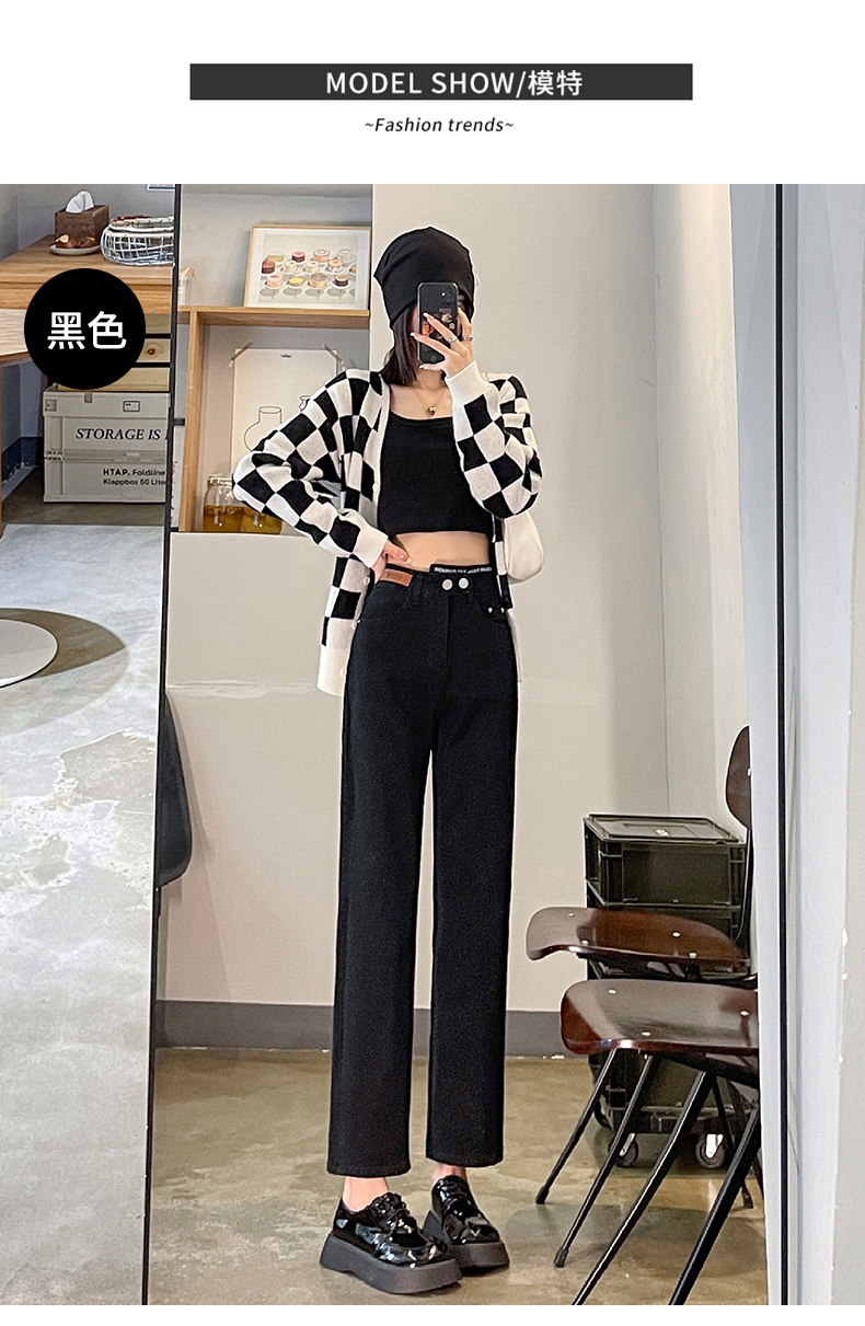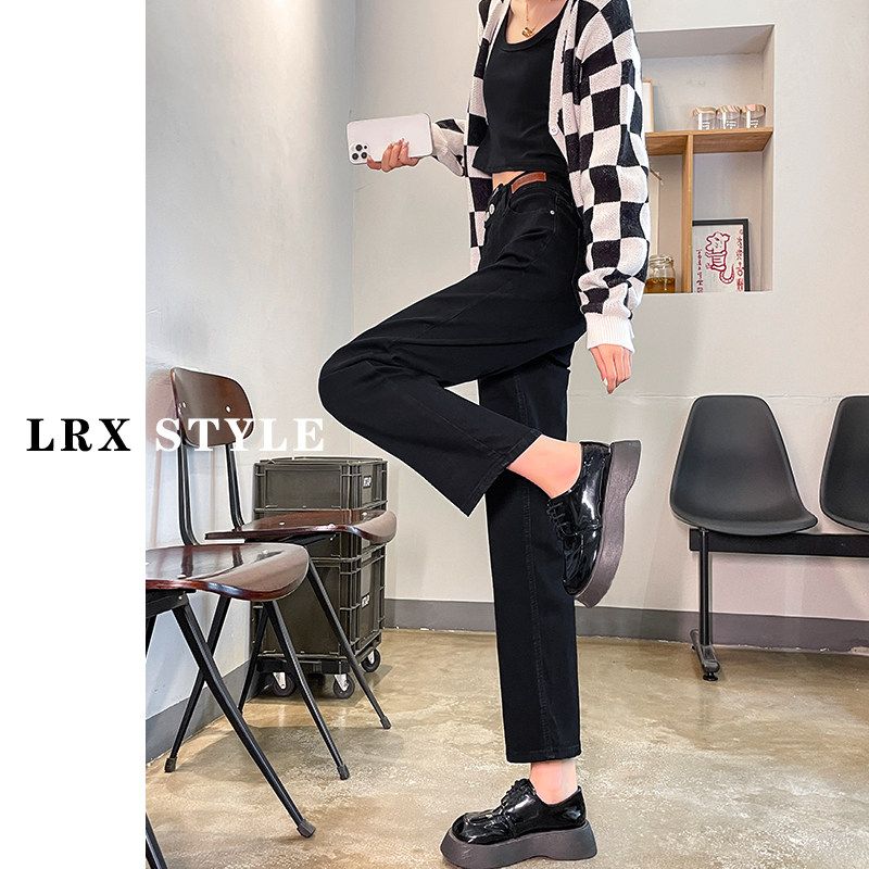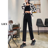 Черные осенние прямые свободные джинсы, приталенные демисезонные штаны, высокая талия, по фигуре, подходит для подростков