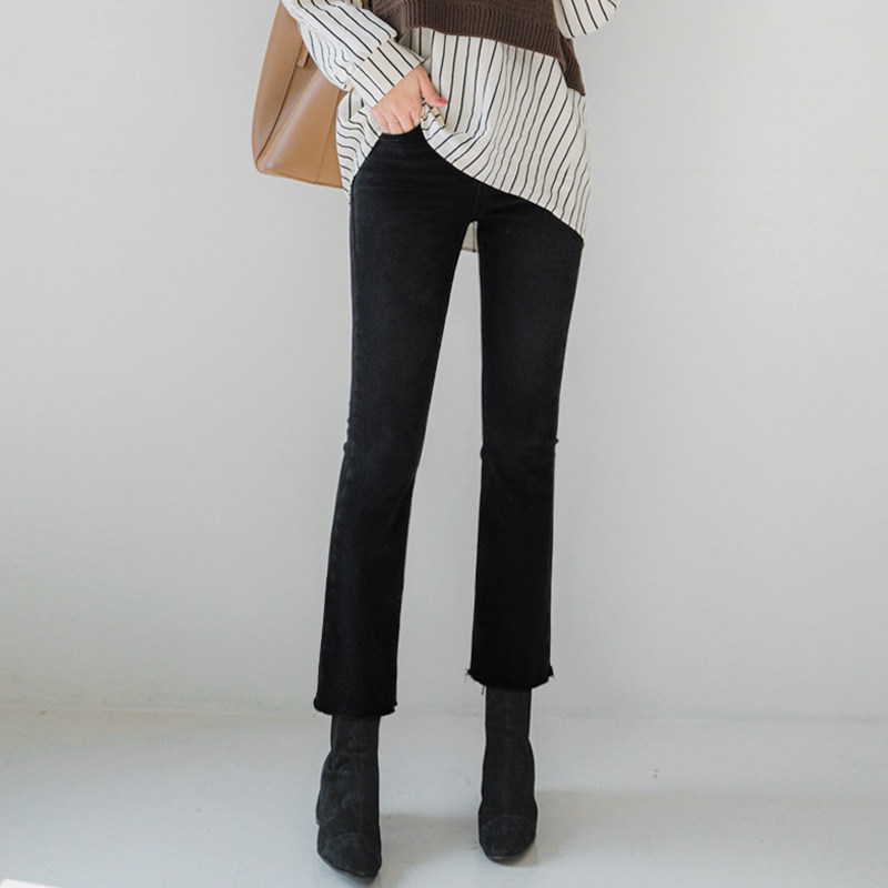 Черные демисезонные прямые свободные джинсы, штаны, утепленные приталенные леггинсы, коллекция 2022, высокая талия, по фигуре, подходит для подростков
