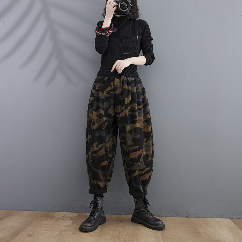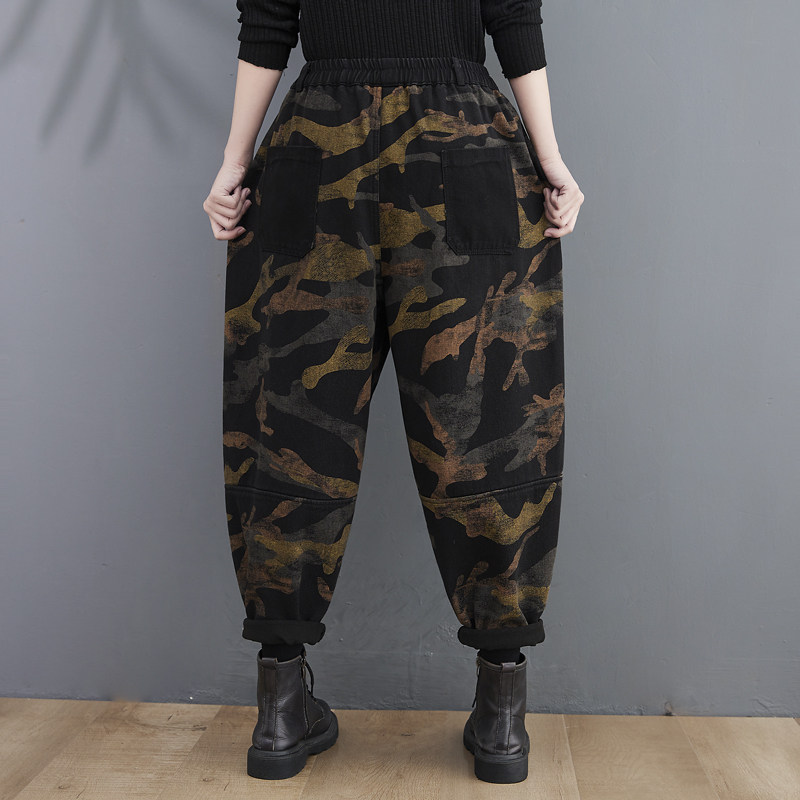 Ретро осенние джинсы, штаны, леггинсы, приталенный фонарь, свободный крой, большой размер, высокая талия