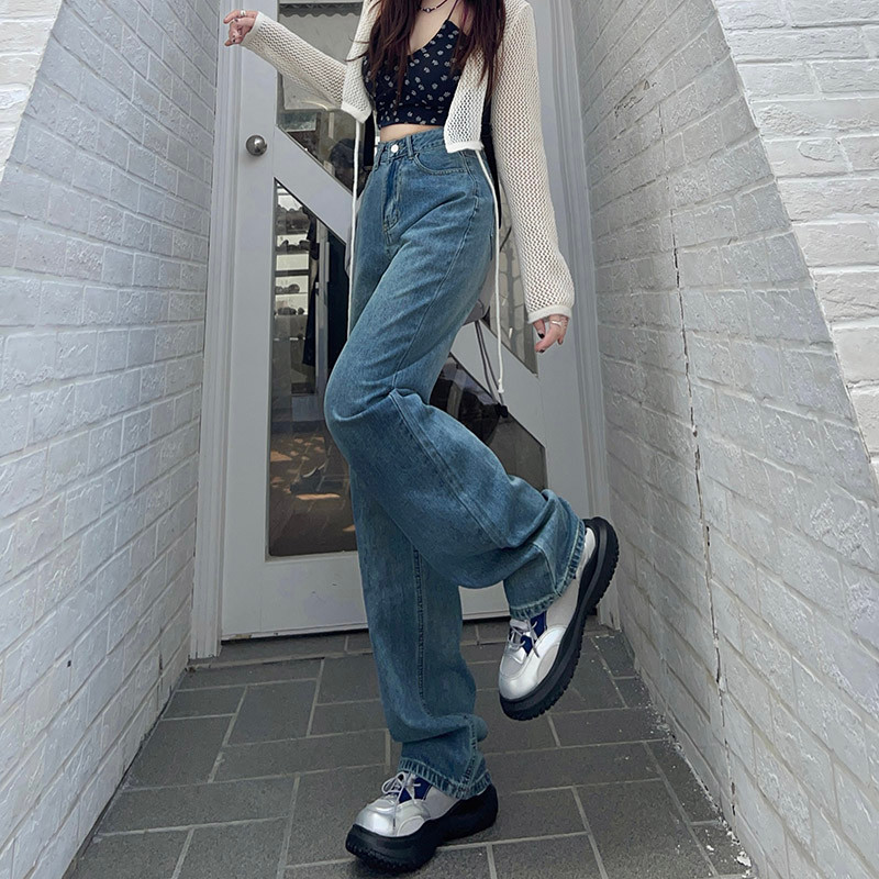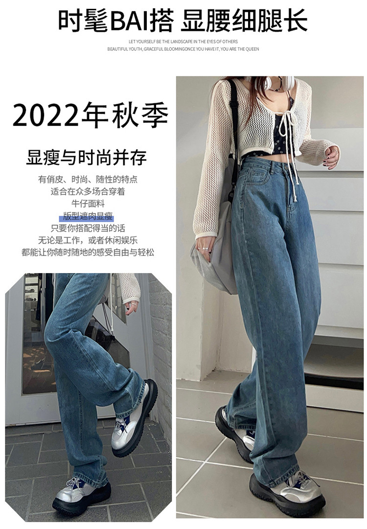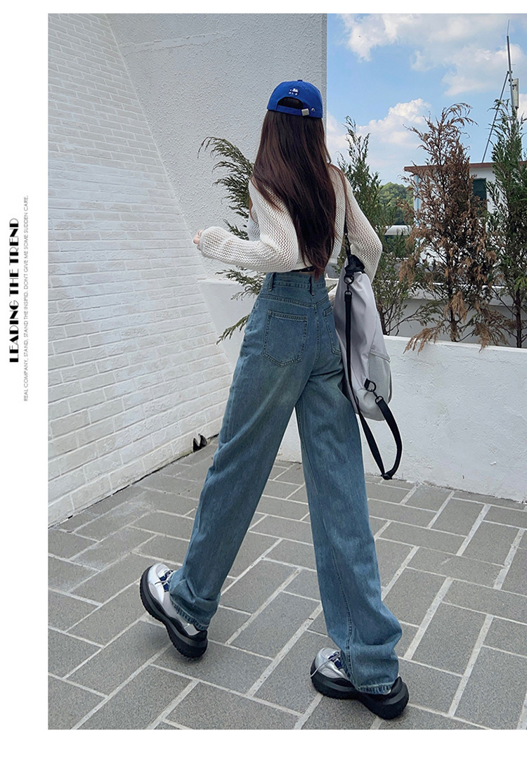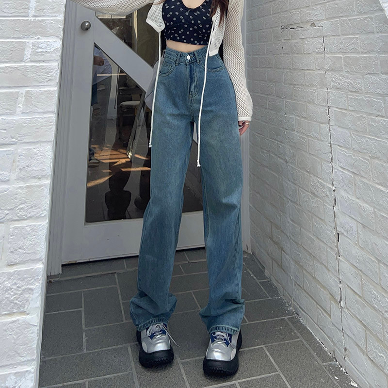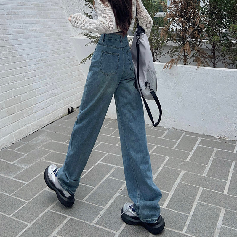 Осенние ретро джинсы, штаны, высокая талия, свободный прямой крой, по фигуре